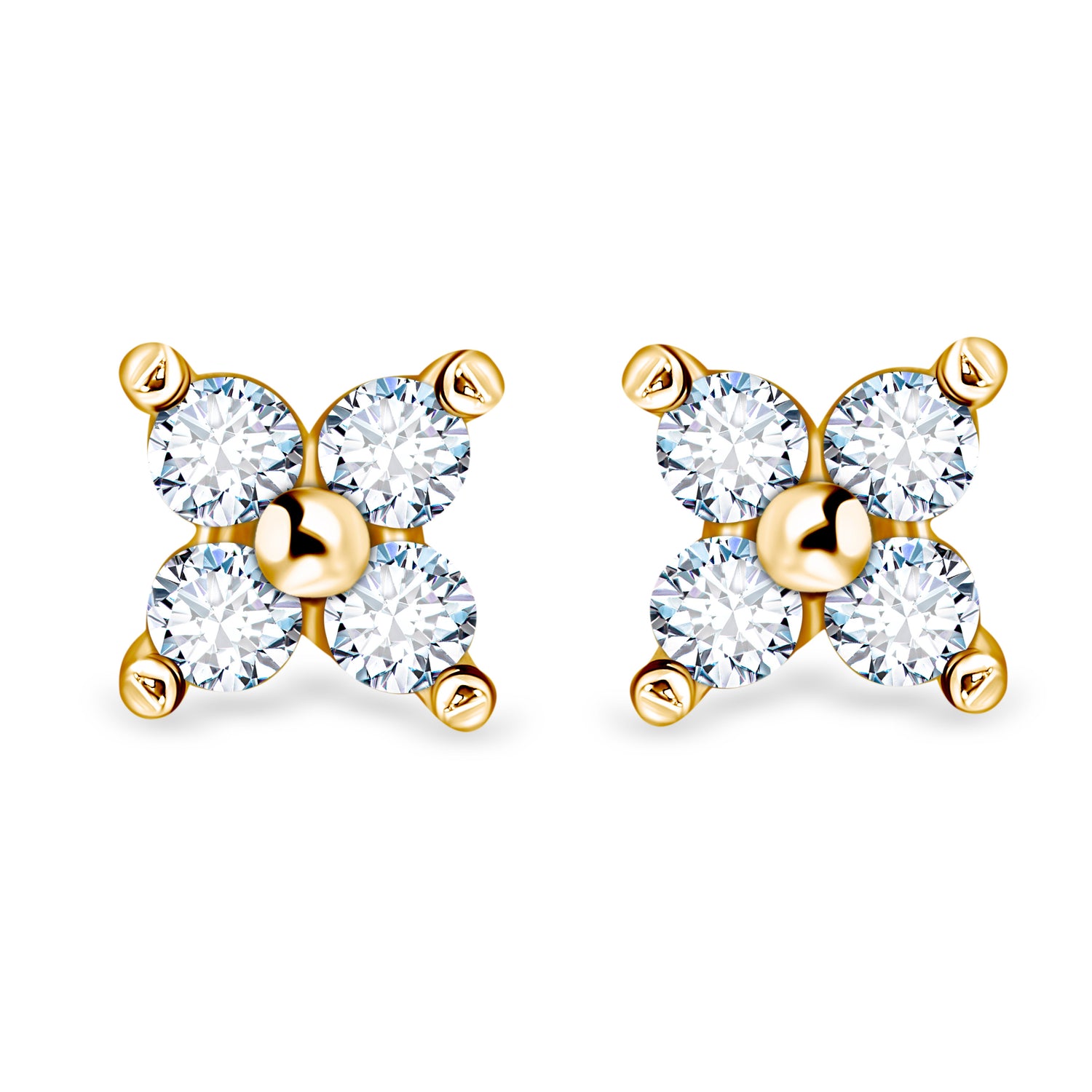 Diamond Blossom earrings are a harmonious blend of subtle design and classic elegance. Crafted from 14k yellow gold, they are adorned with four sparkling diamonds, creating a striking floral design. Perfect for everyday wear, they will enhance your natural elegance, while also pairing perfectly with more formal outfits, adding sparkle and femininity.