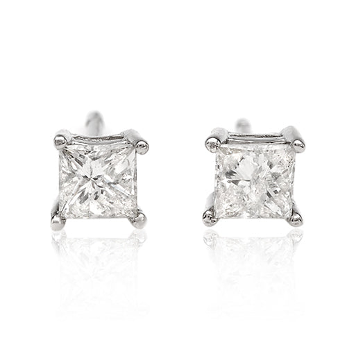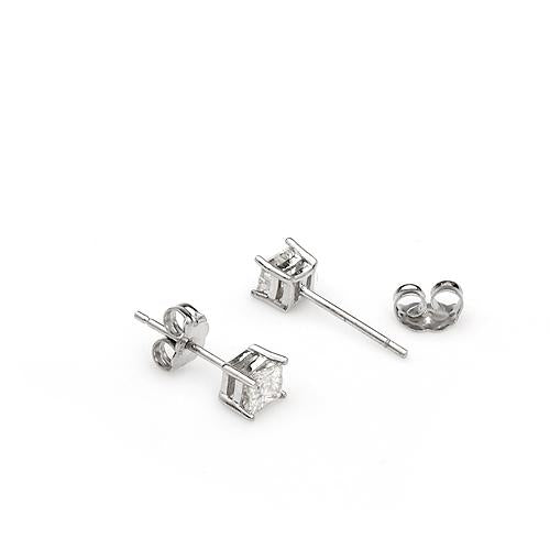 Elegant stud earrings crafted from white gold, adorned with two princess-cut diamonds weighing a total of 0.40 ct. The modern, geometric cut accentuates the purity and brilliance of the stones, creating a striking yet subtle piece of jewelry. The minimalist design makes this an ideal accessory for both everyday wear and special occasions.
