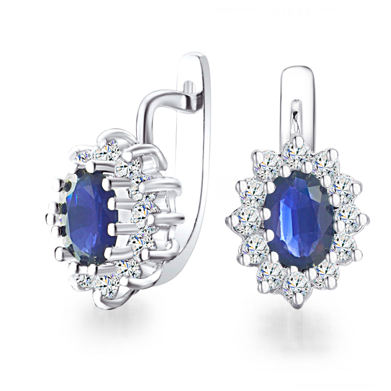 These exceptional Edwardian-style earrings are inspired by the timeless elegance of the era. A 7x5 mm natural sapphire forms the centerpiece, surrounded by an intricate crimson diamond setting, creating a luminous halo. The combination of the sapphire's deep color with the brilliance of the diamonds and white gold lends the piece a noble, regal character. The vintage-inspired design makes these earrings a perfect choice for lovers of classic yet striking jewelry.