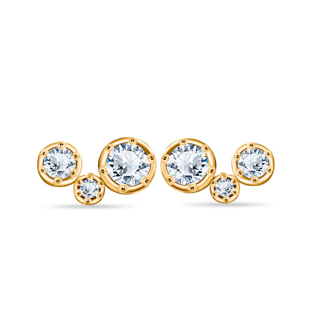 The Gold Trio with Diamonds earrings are crafted in 14k yellow gold and adorned with three sparkling diamonds weighing a total of 0.60 ct. Their subtle sparkle and elegant design make them an ideal choice for both special occasions and everyday wear. Every detail has been designed to enhance the natural beauty of the diamonds, which dazzle with their brilliance and clarity. These earrings will be the perfect addition to any outfit, adding class and sophistication.