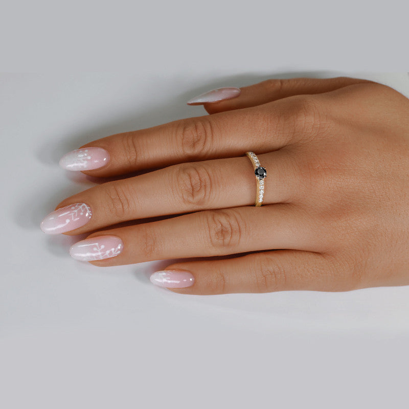 Starlit Promise - yellow gold ring with black diamond