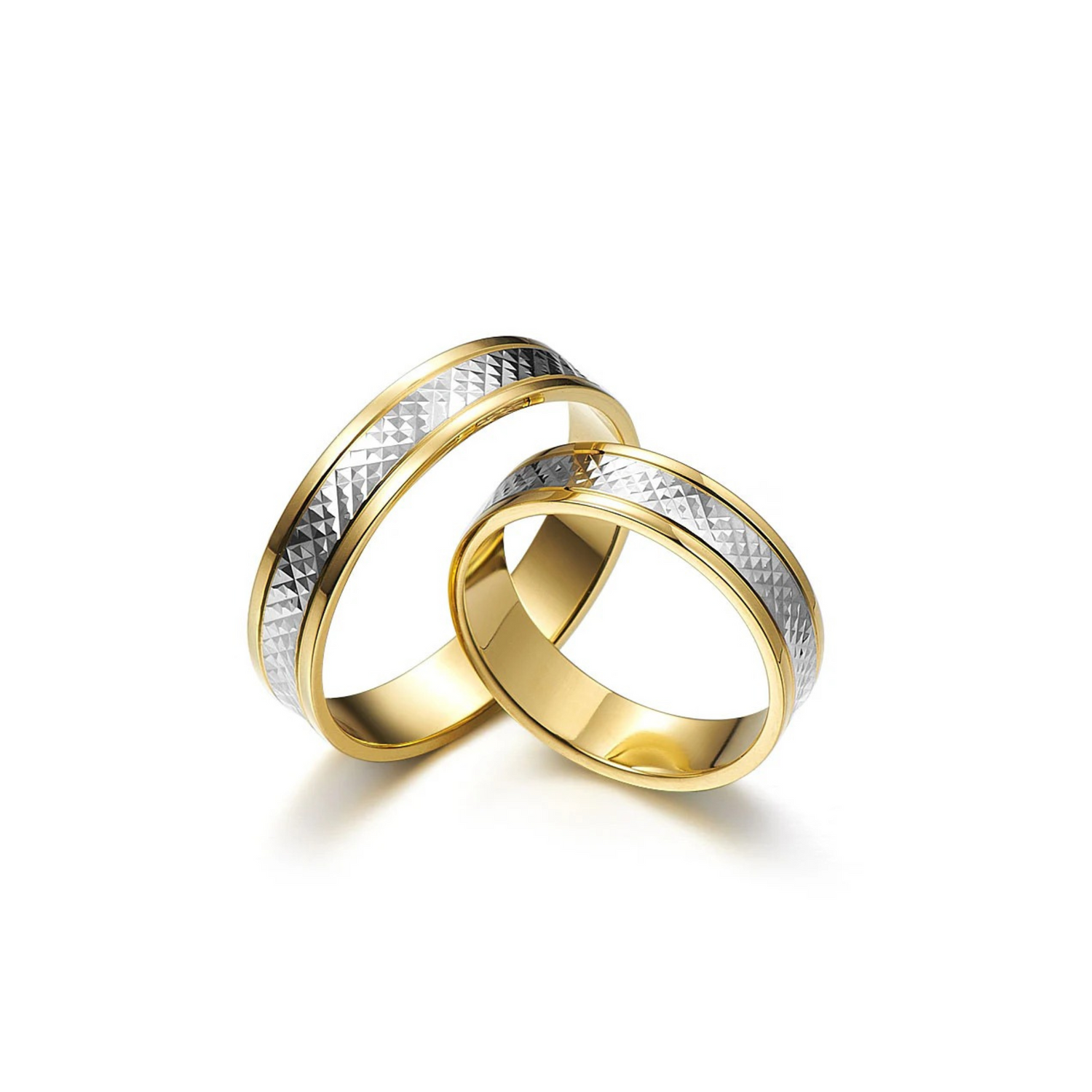 Two-color wedding rings that attract attention with their design - 10 / 18 is backordered and will ship as soon as it is back in stock.
