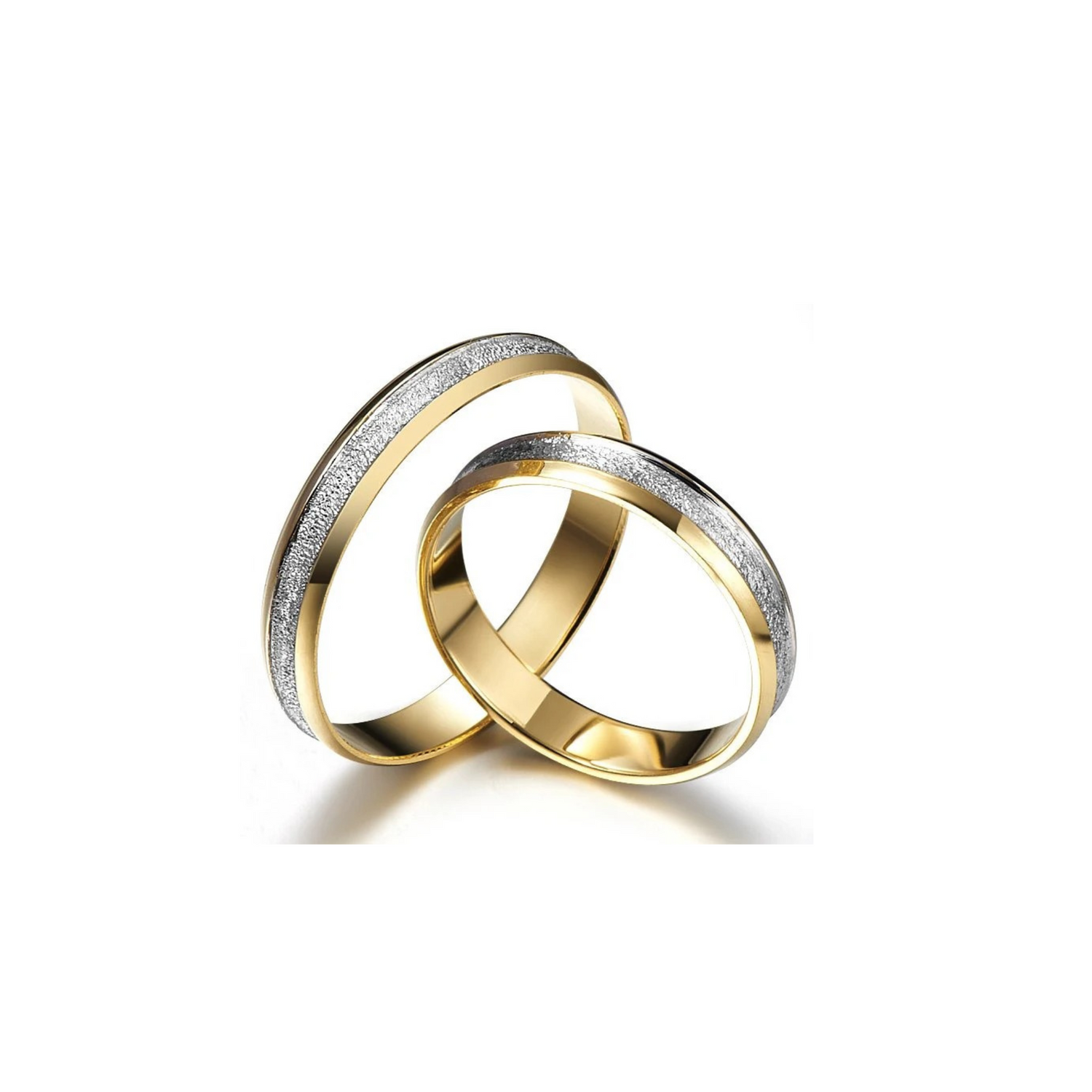 These gold wedding rings are 4mm wide and weigh a total of 8.5g (for sizes M25 and D15). To emphasize their uniqueness, the rings feature yellow gold accents, complemented by white gold embellishments that beautifully reflect light. The design is striking and eye-catching, yet the rings appear delicate.