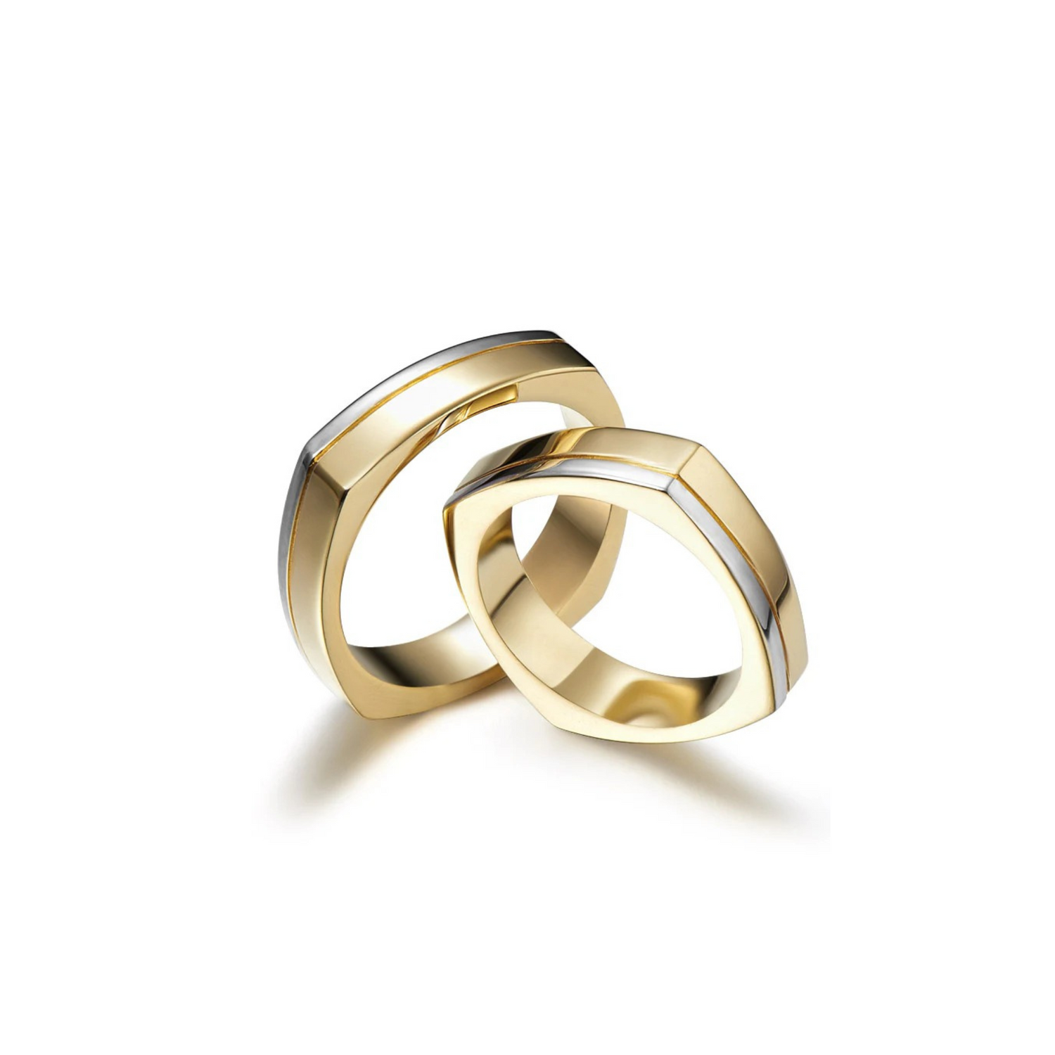Wedding rings made of two colors of gold with unique shapes. Prices are calculated for sizes D15 M25; for larger sizes, prices may change.