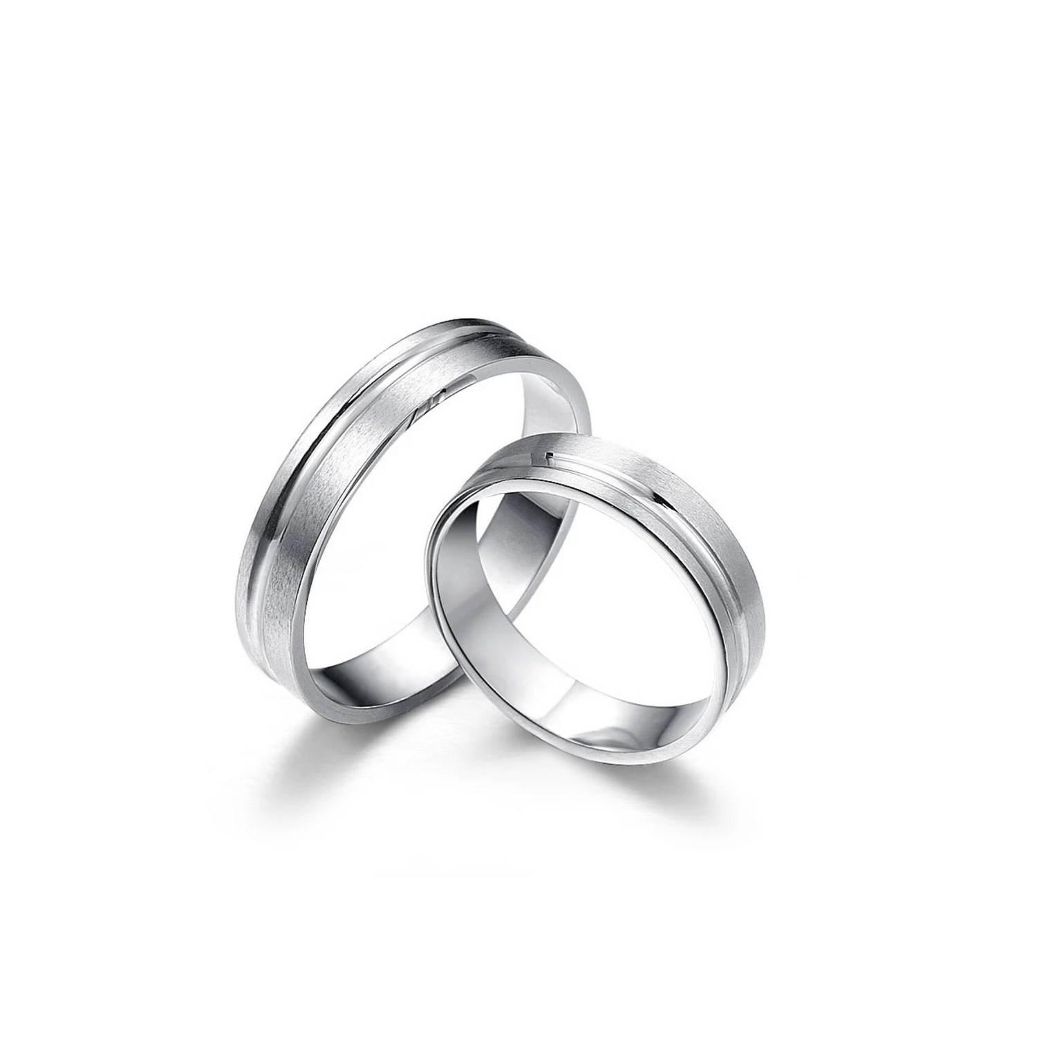 White gold wedding rings with a matte surface and delicate milling