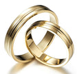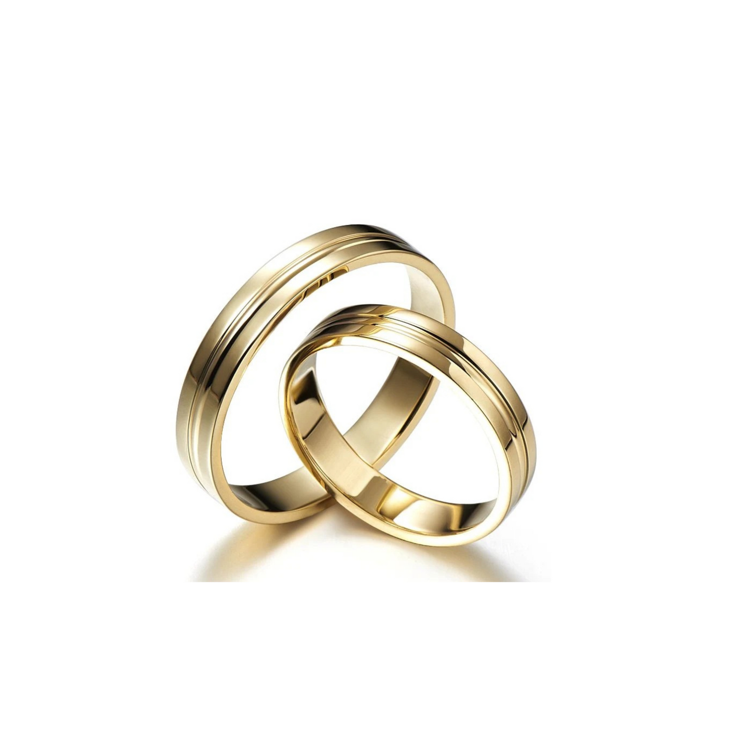 This interesting design of wedding rings, crafted entirely from yellow gold, maintains a sense of style and tasteful elegance. The secret lies in the delicate grooves running around the band, which reflect light in a completely different way. The rings are 4mm wide and weigh 7.5g (in sizes M25, D15).