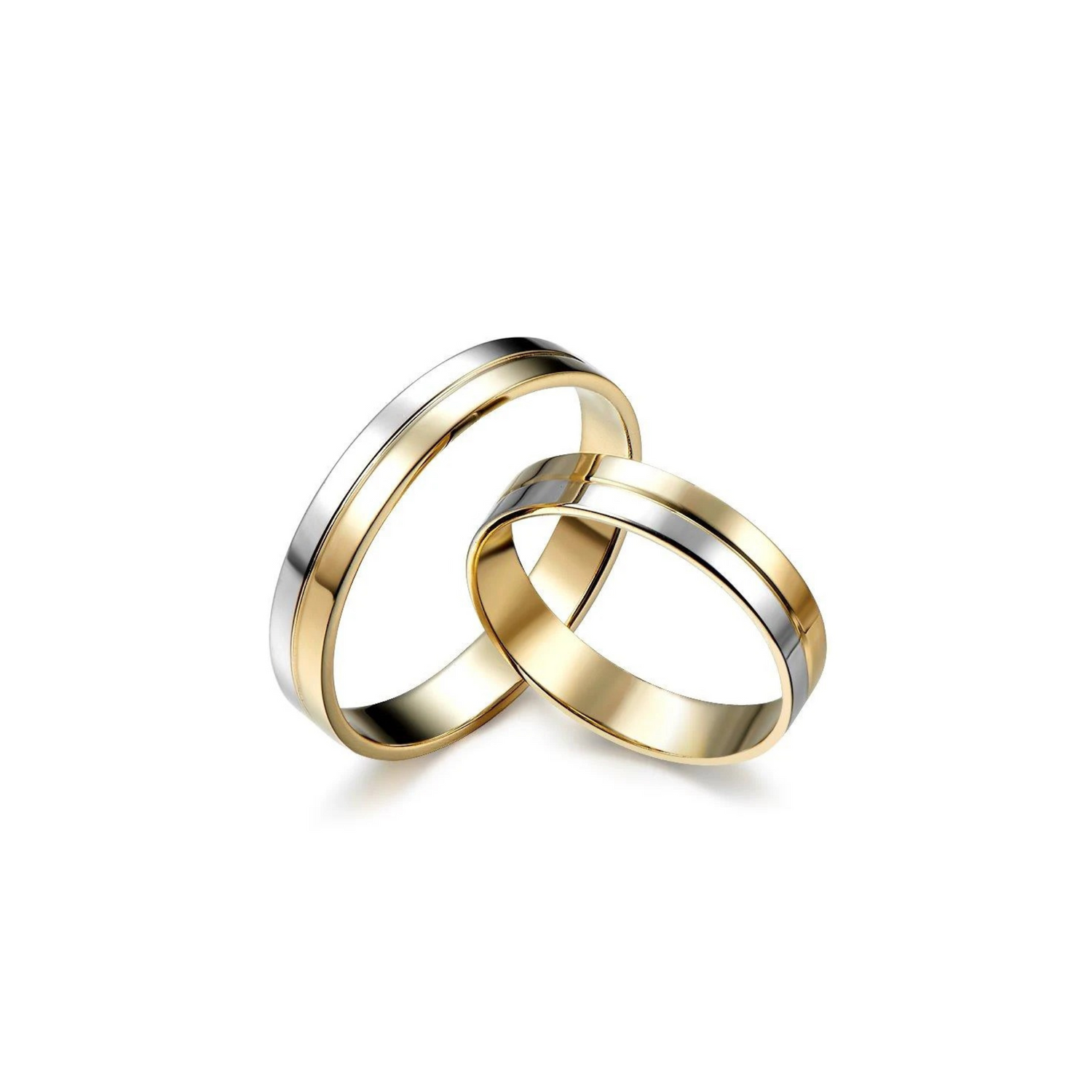 Wedding rings for those who appreciate the precious metal in both colors. Thanks to their perfectly balanced proportions, this set of rings with a subtle width of 4 mm presents a harmonious and very elegant appearance. Prices are calculated for sizes D15 M25; for larger sizes, prices may change.