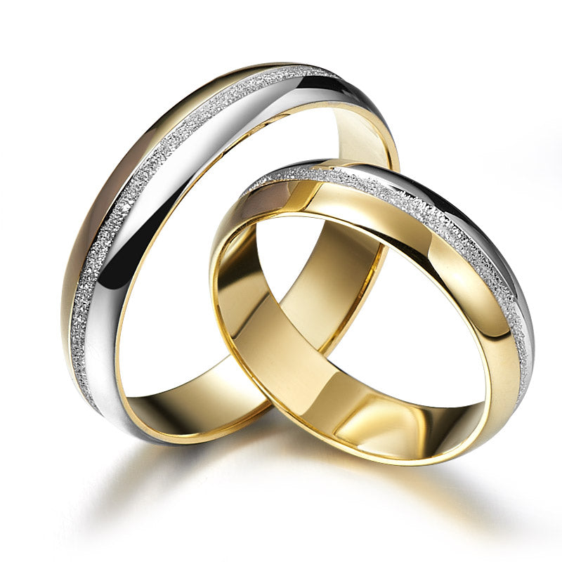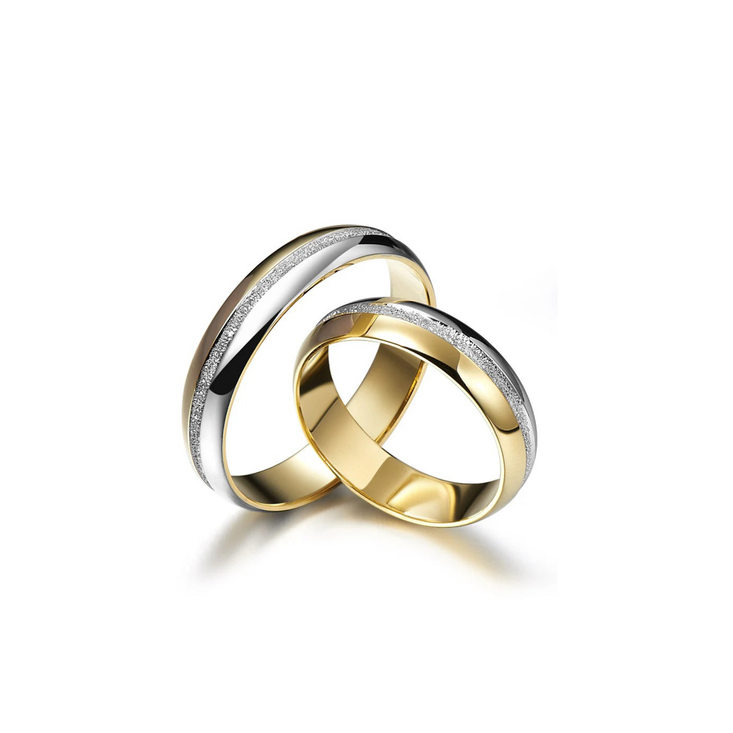 Wedding rings made of a combination of white and yellow gold, 5mm wide, weighing a total of 7.5g (for sizes M25, D15).
