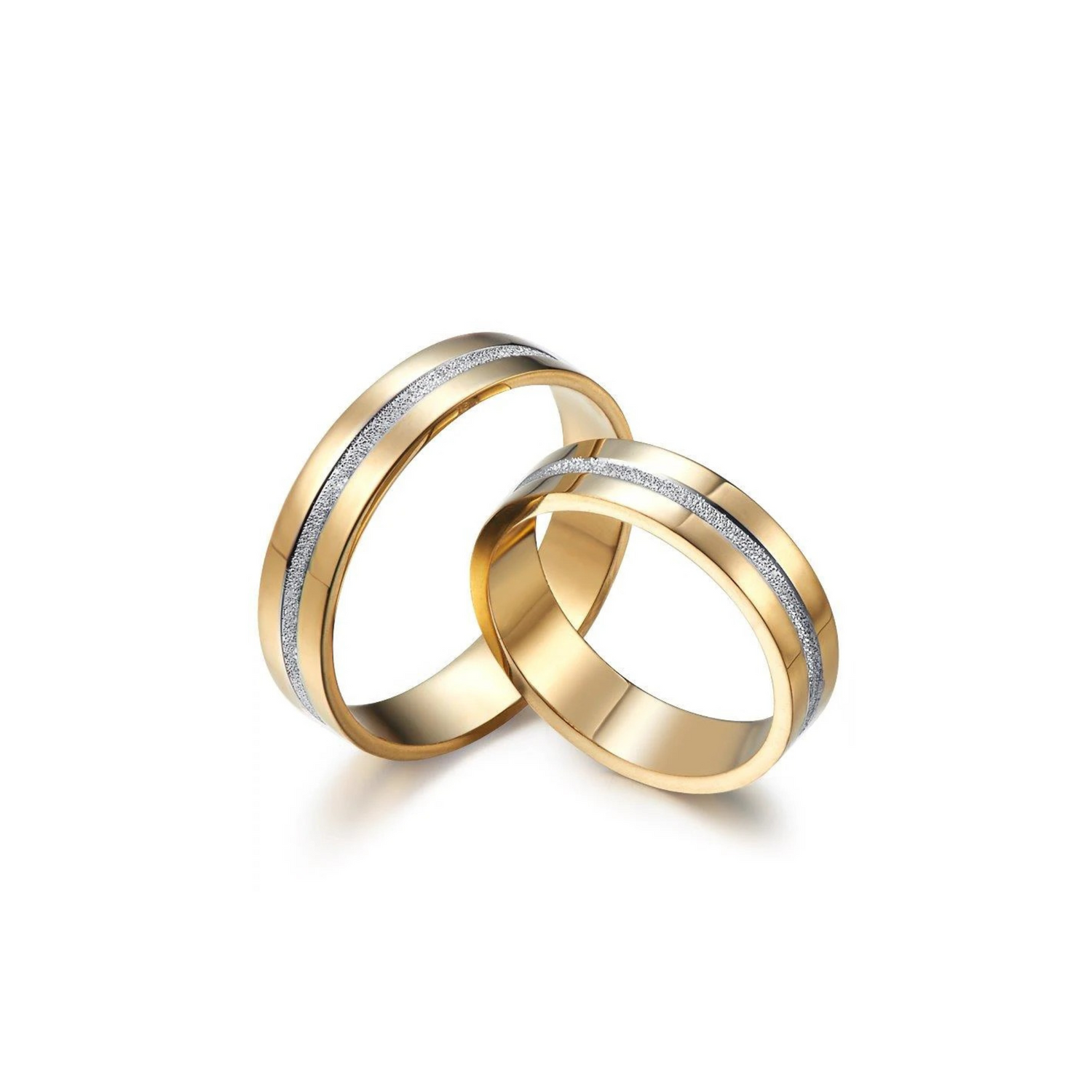 Wedding rings decorated with a delicate stripe