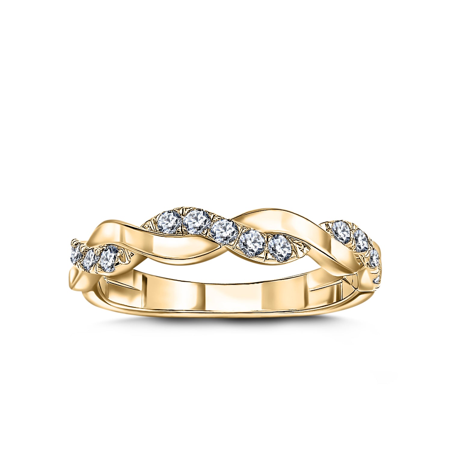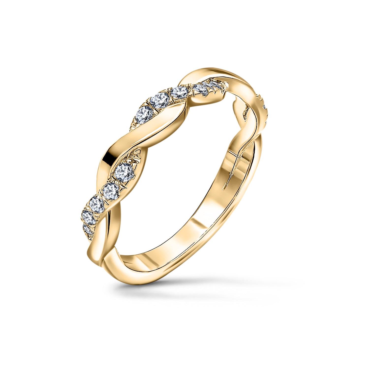 The Timeless Harmony wedding band set, crafted from 585 (14K) yellow gold, is the perfect choice for a symbolic day that will forever unite two people. The women's band features a subtle interlaced design adorned with sparkling diamonds, lending it elegance and a unique character. The men's band offers classic elegance, a beautifully contoured, smooth form, and a width of 5 mm. A narrower version is also available upon request.