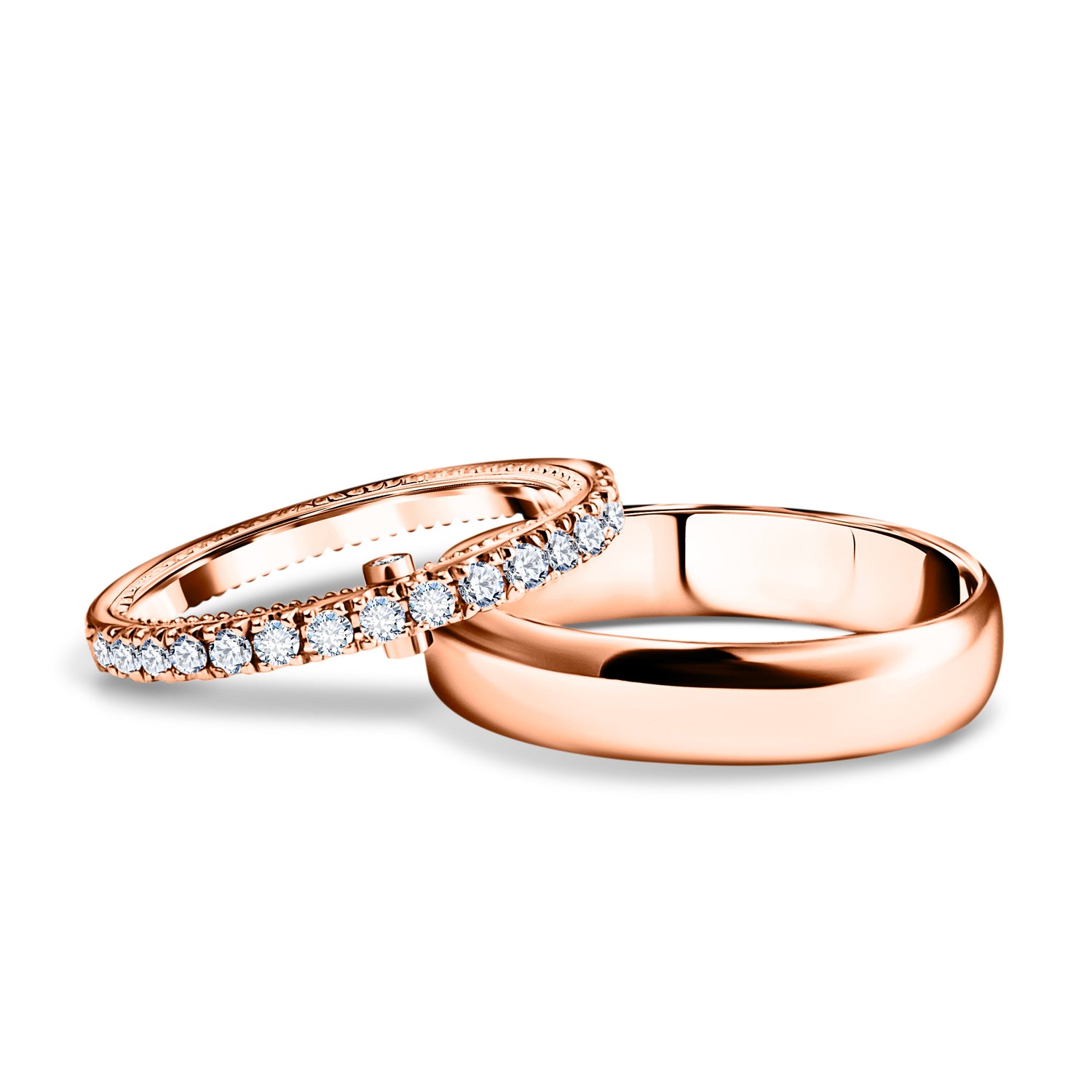 Both rings are crafted from the highest quality rose gold, enhancing their classic yet modern design. This set symbolizes harmony and balance, creating the perfect pair.