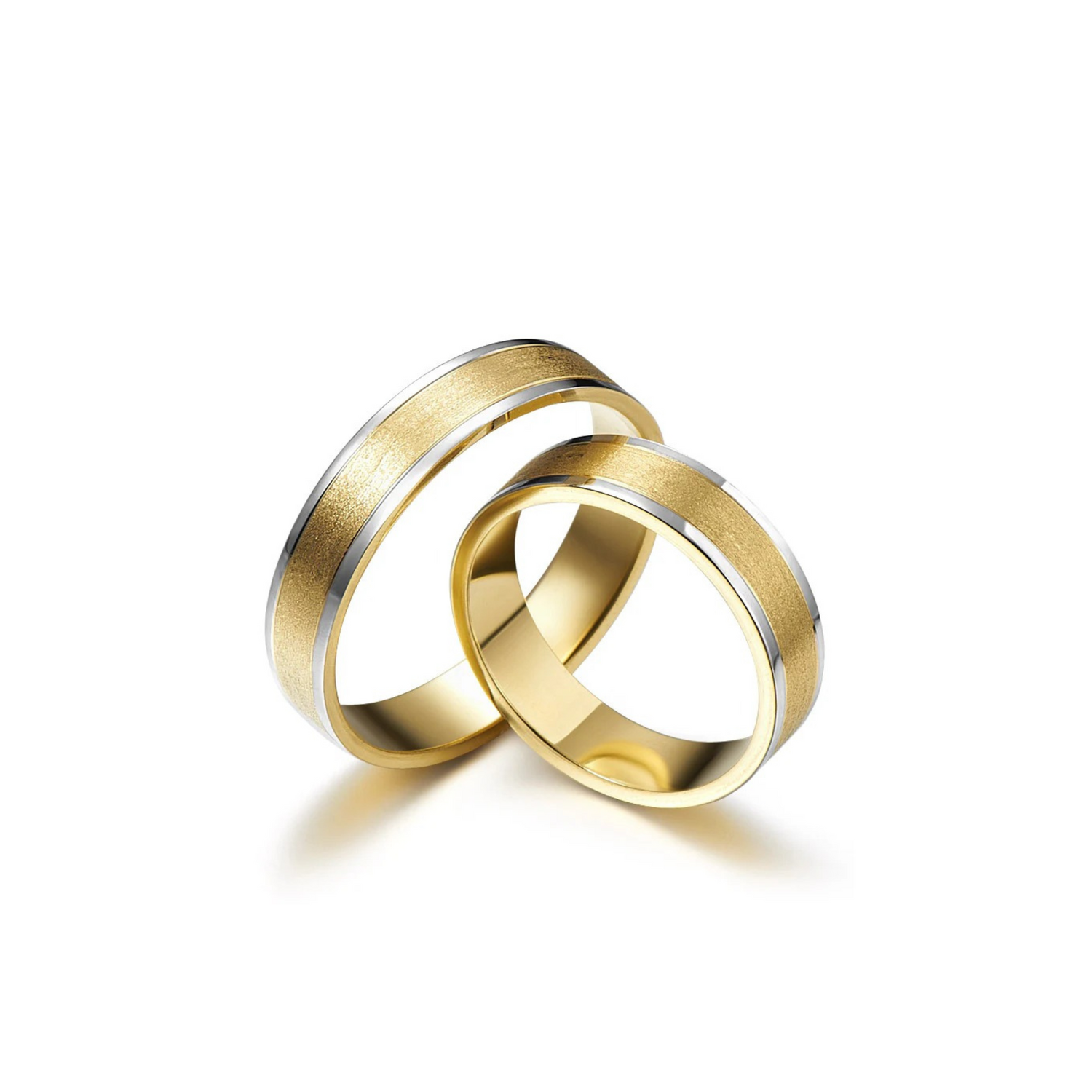 Gold wedding rings with white edges