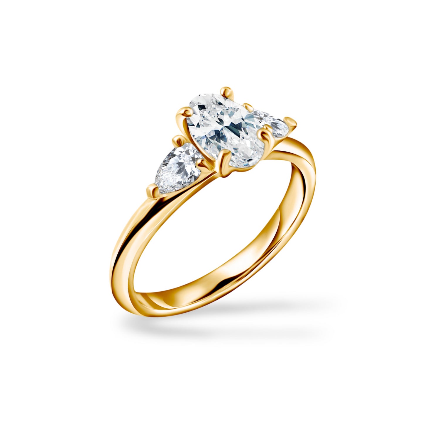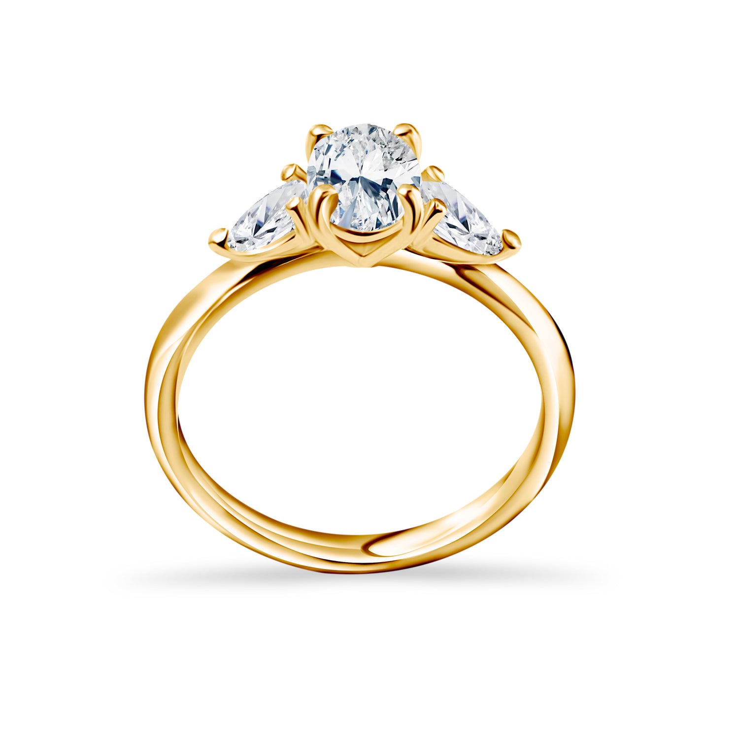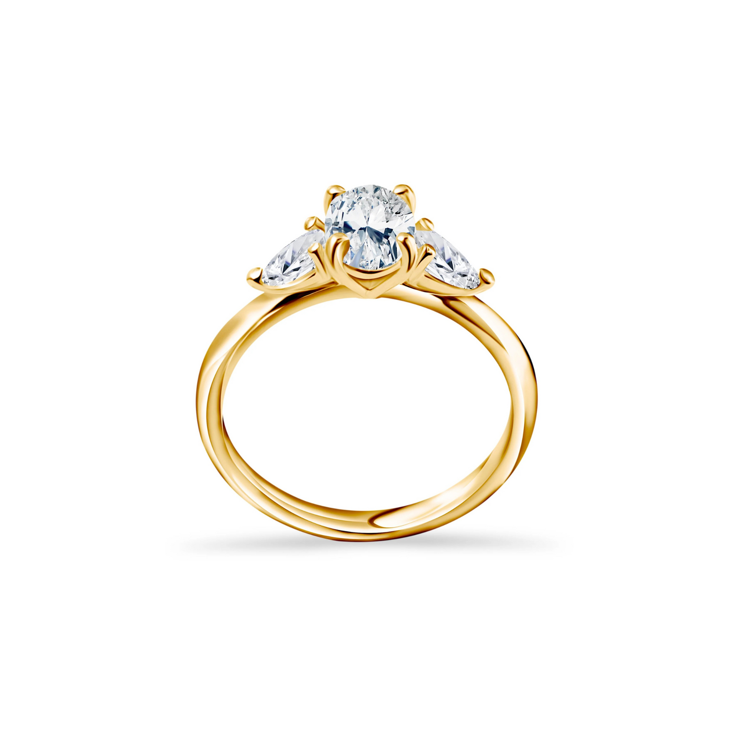 'Eternal Embrace', which translates to 'eternal embrace,' perfectly captures the depth and meaning of this exceptional ring. A central oval-cut diamond is surrounded by pear-shaped diamonds, which, like delicate arms, subtly embrace the center stone. This 'embrace' symbolizes permanence and closeness, making this ring the perfect expression of deep feelings and eternal promises.