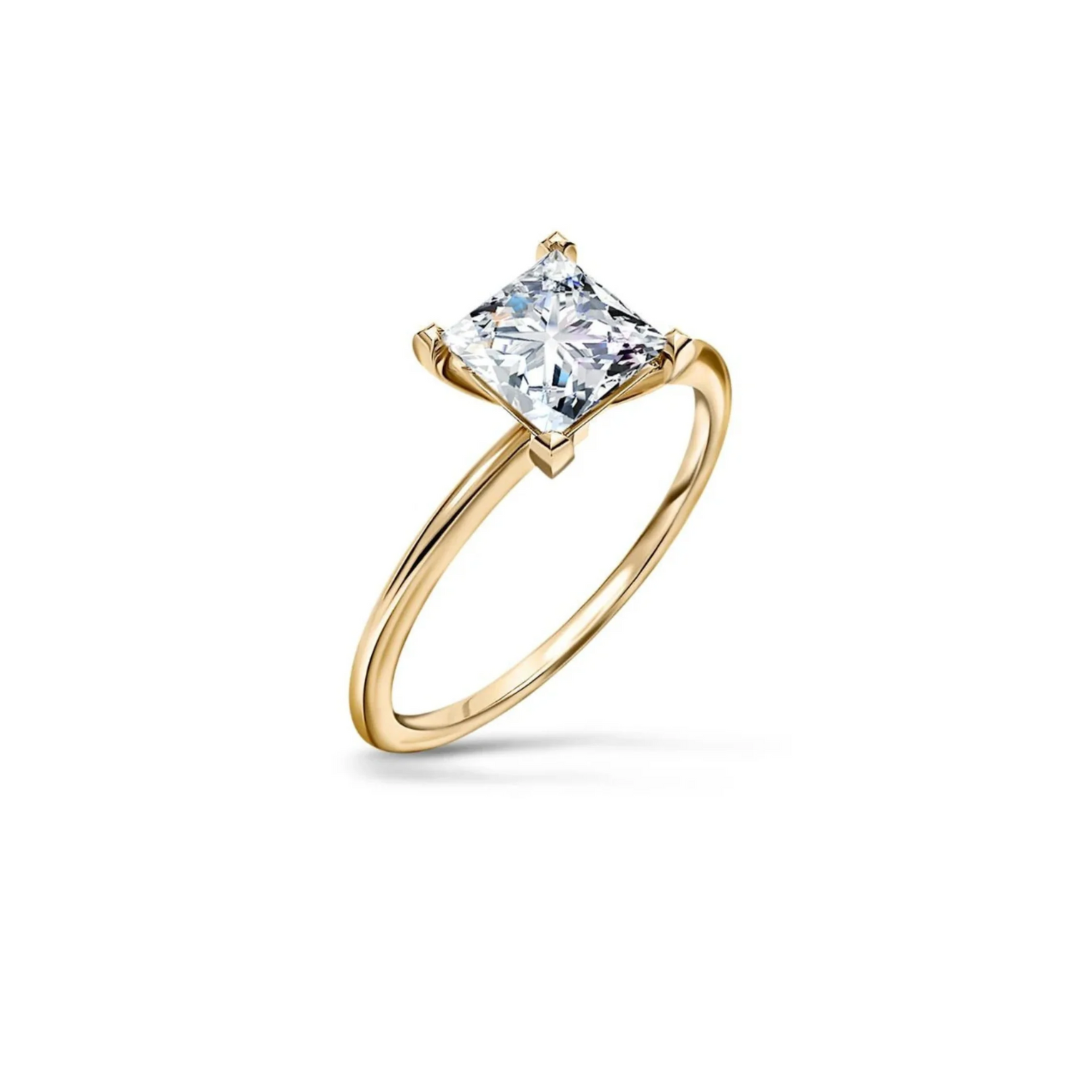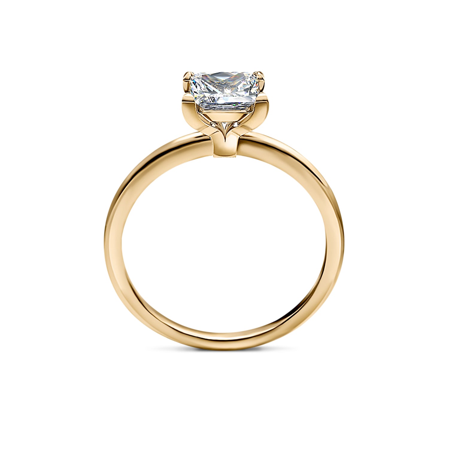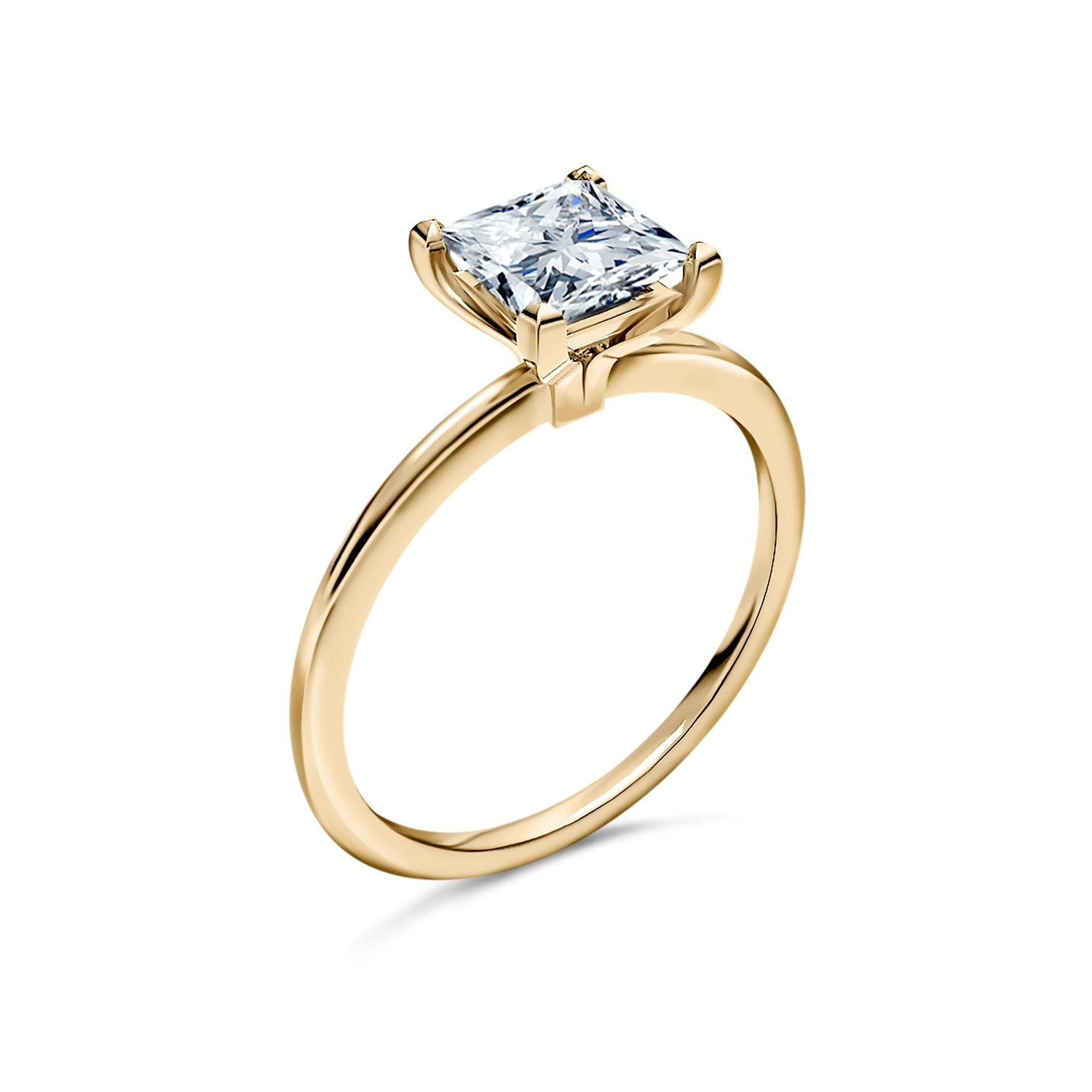 Discover the subtle charm of the Golden Princess ring, where classic style meets modern brilliance. The central 0.70ct Lab-Grown Princess Cut diamond captivates with its perfect proportions and exceptional brilliance. The delicate yellow gold band and setting are designed to maximize the stone's size and beauty, showcasing it from every angle.