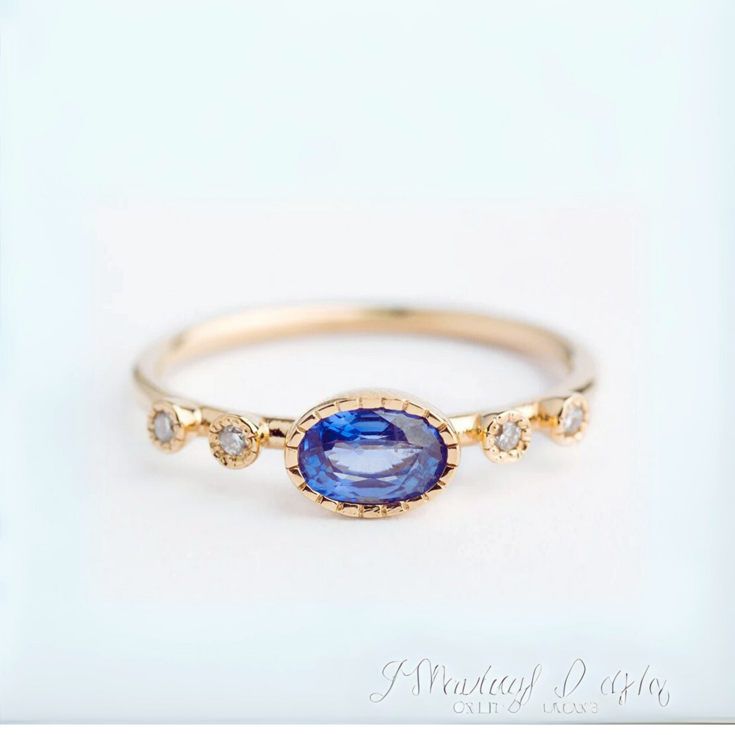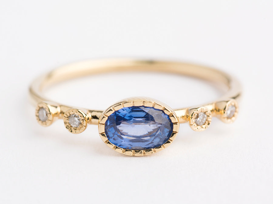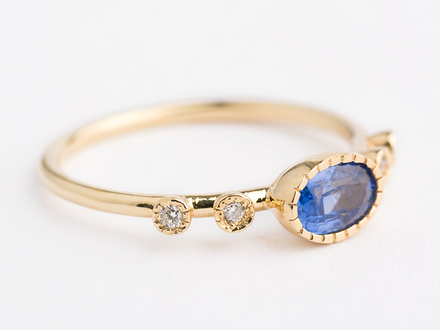 Azure Duet - an original yellow gold ring with sapphire and diamonds - 6 is backordered and will ship as soon as it is back in stock.