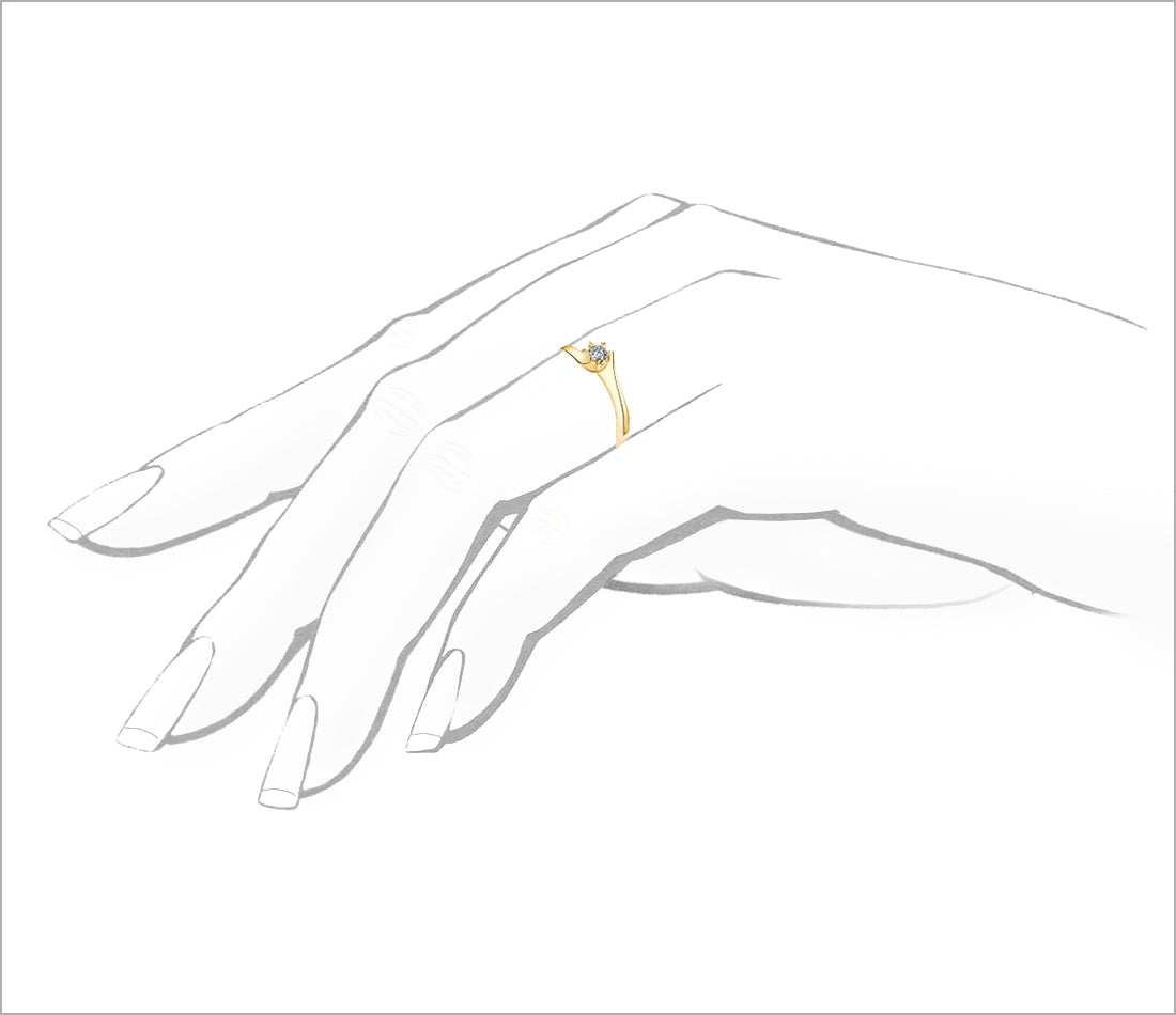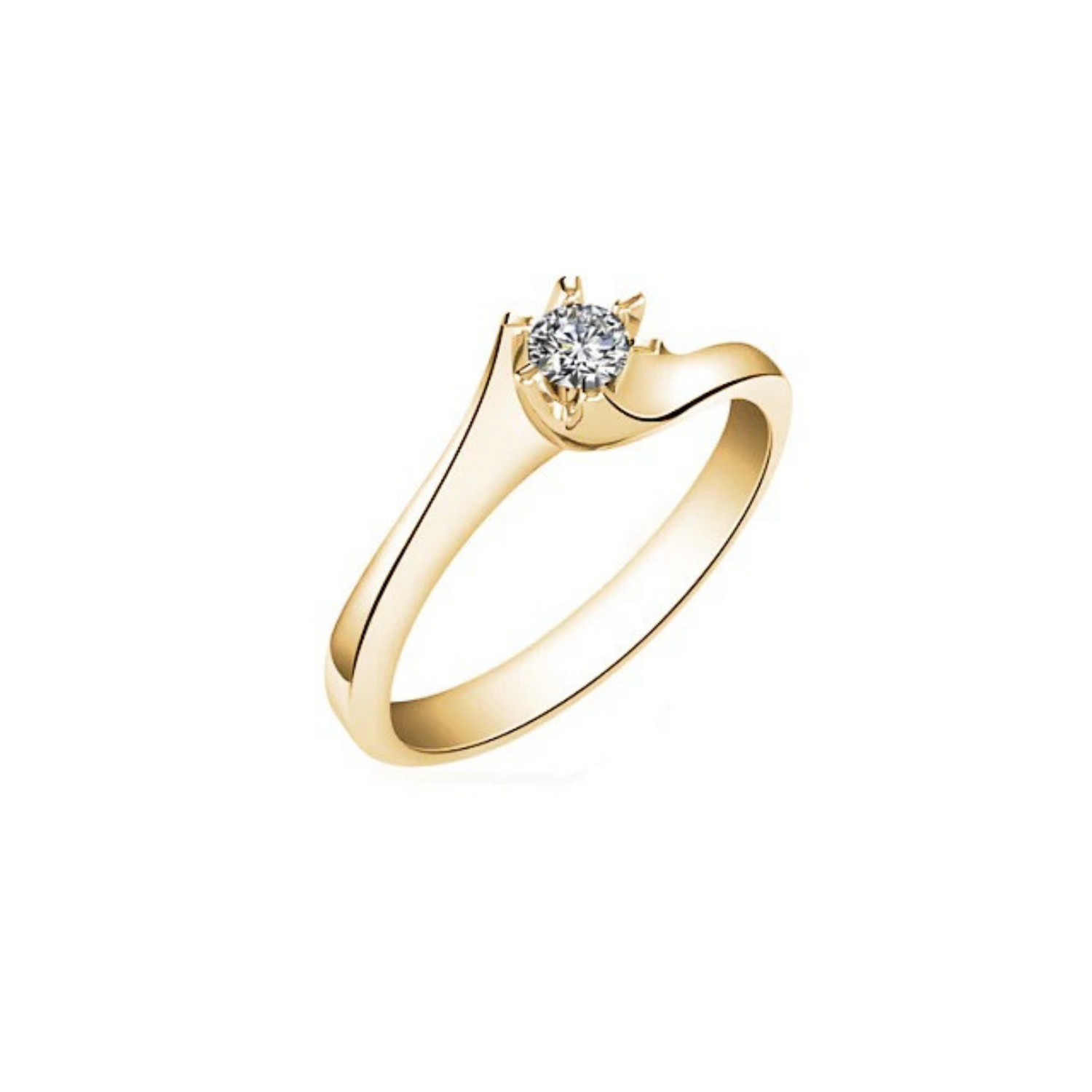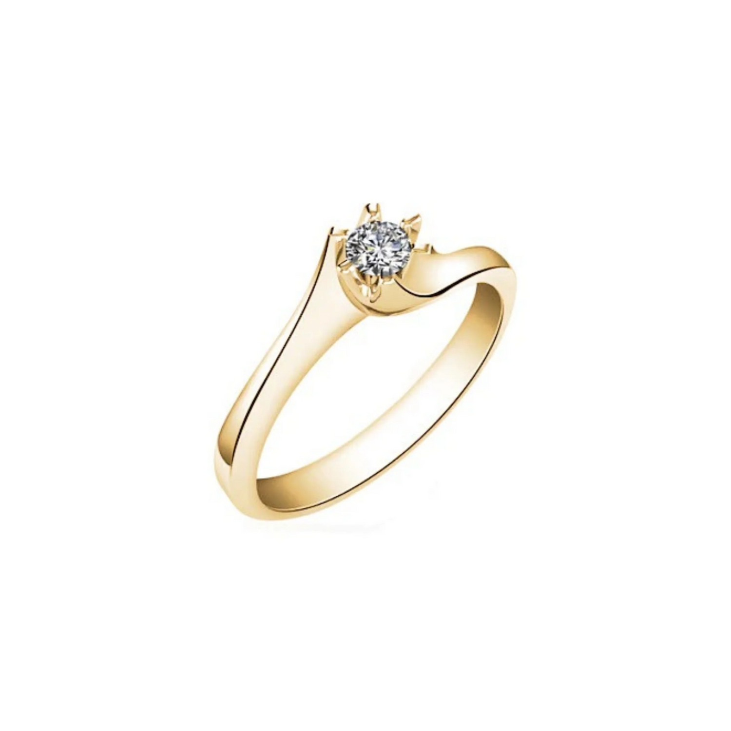 The ring's shape evokes the motif of a wave gently circling the central stone. Yellow gold surrounds the diamond, gently lifting it and allowing it to sparkle beautifully in the bright sunlight. The exceptionally subtle form lends the ring a lightness, while the combination of precious gold and a 0.10-ct diamond makes for a ring that is not only elegant but also exceptionally durable. The use of the finest materials and meticulous craftsmanship have resulted in a ring that captivates with its beauty.
