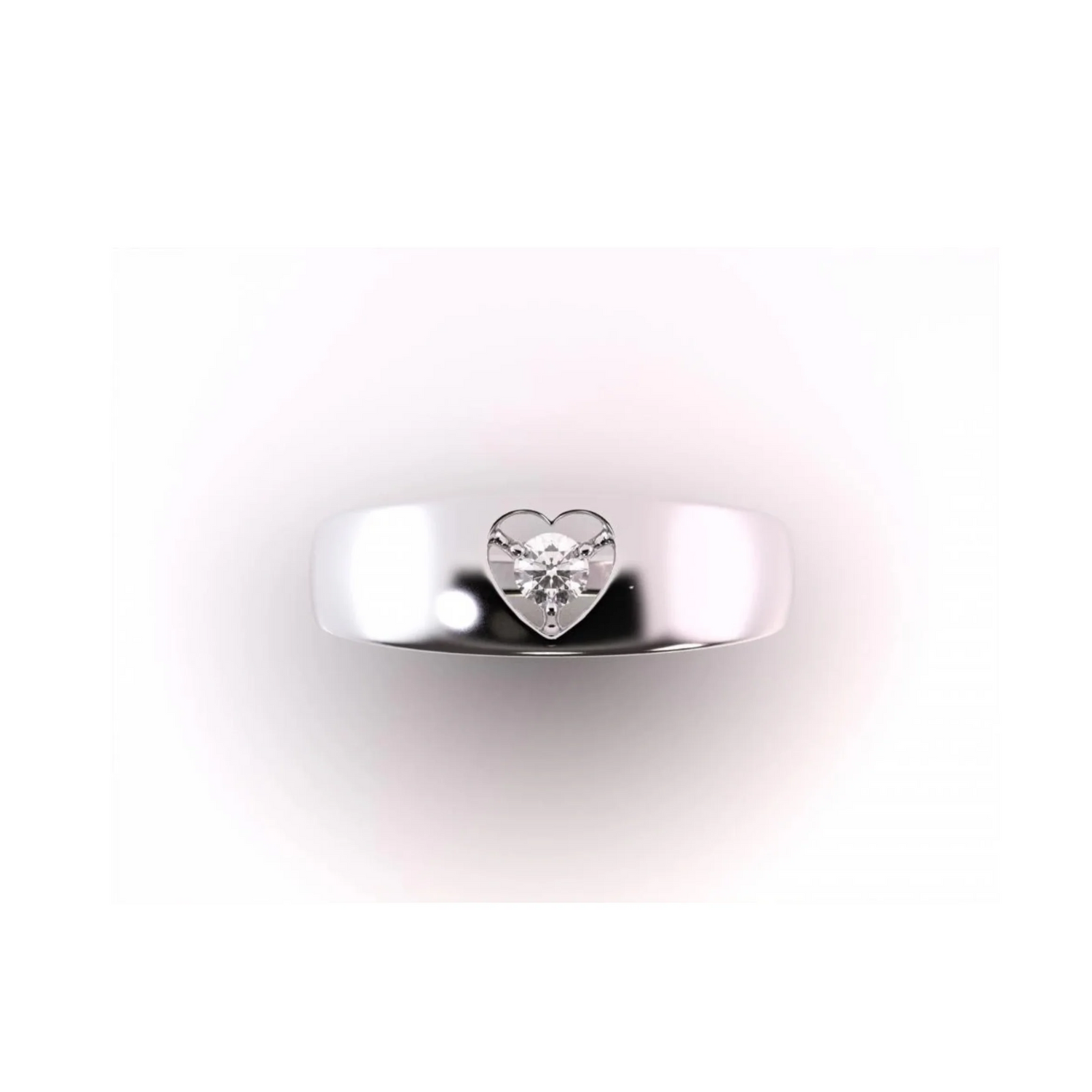 This exceptional ring in 585 white gold captivates with its original design and subtle symbolism. A delicate heart is carved into the wide, modern band, with a 0.10-carat diamond set in its center. It combines minimalist form with an expression of profound emotion – a symbol of love captured in elegant detail. The ring design won first place in the 2010 Facebook Jewelry Design competition, praised for its innovation and flawless composition. The model is also available in yellow gold.