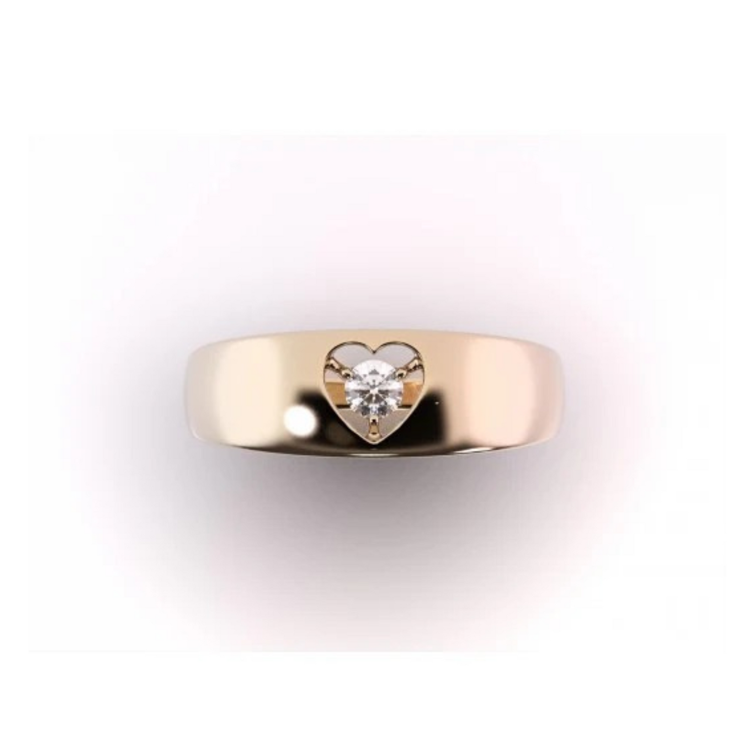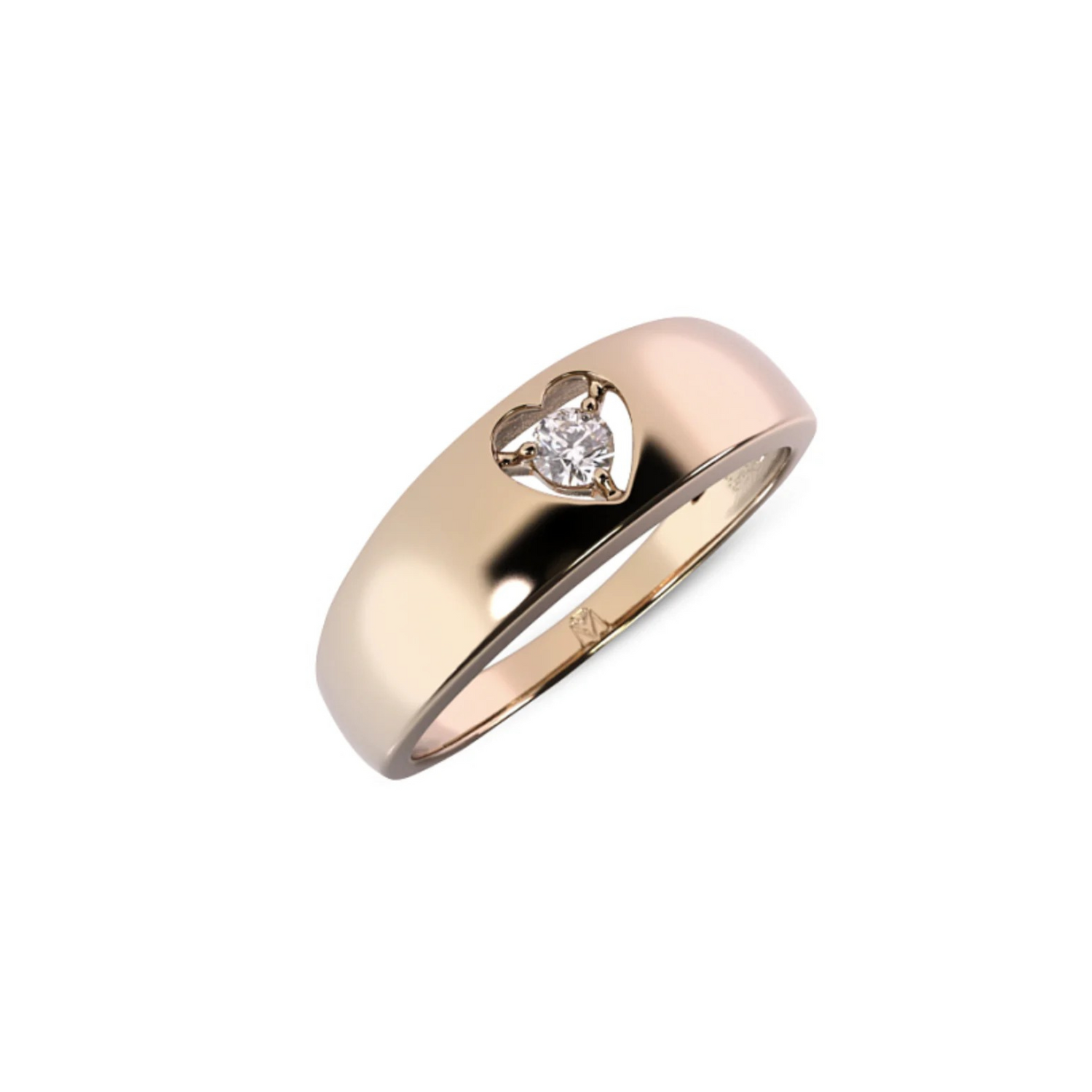 Yellow gold ring with a heart and a 0.10 ct diamond