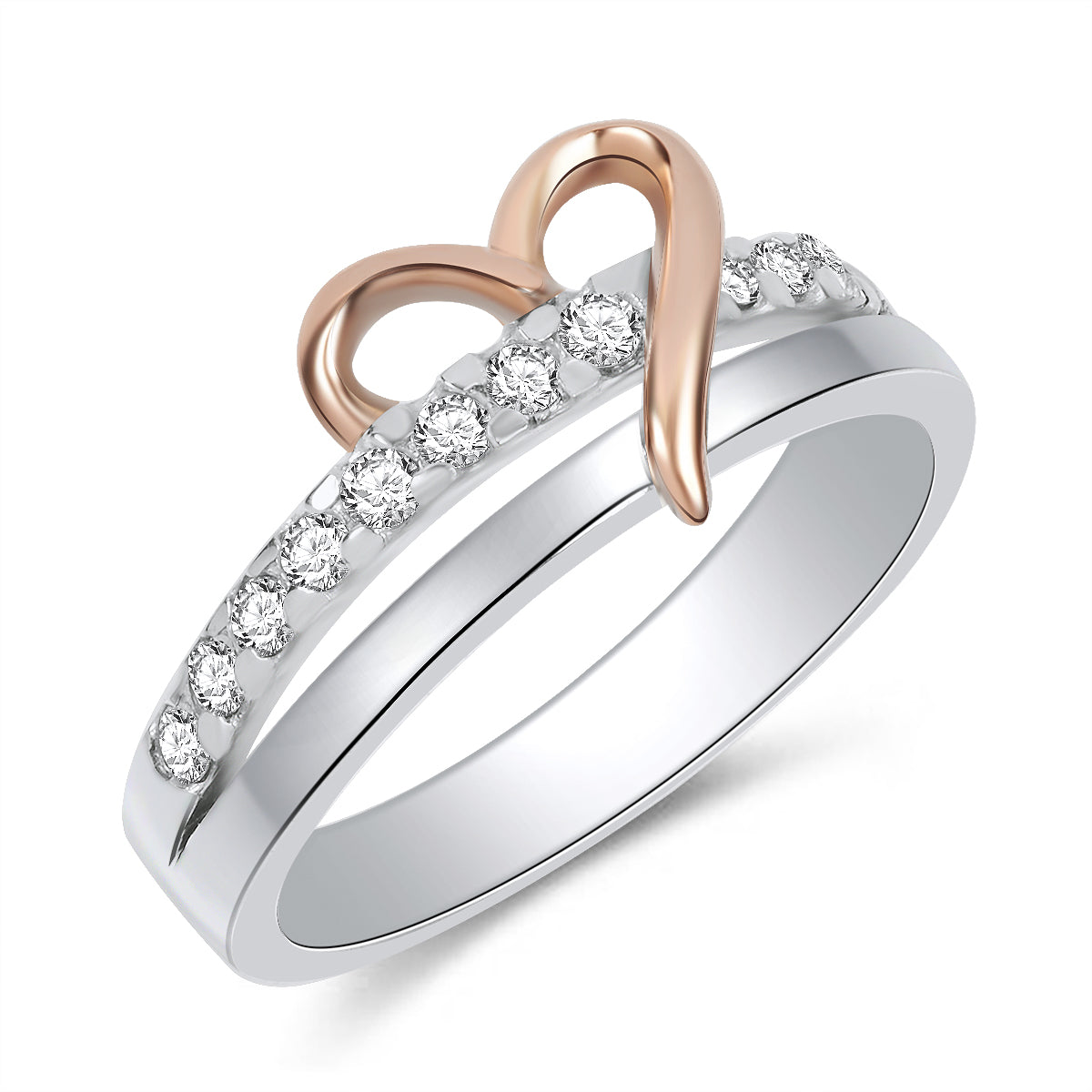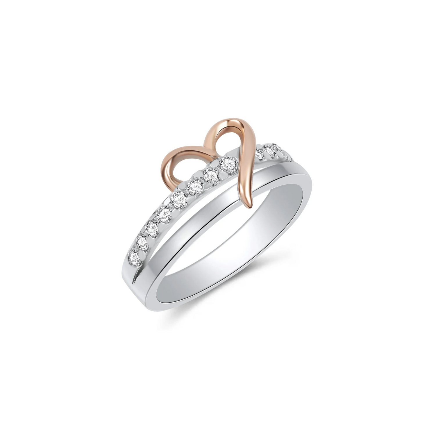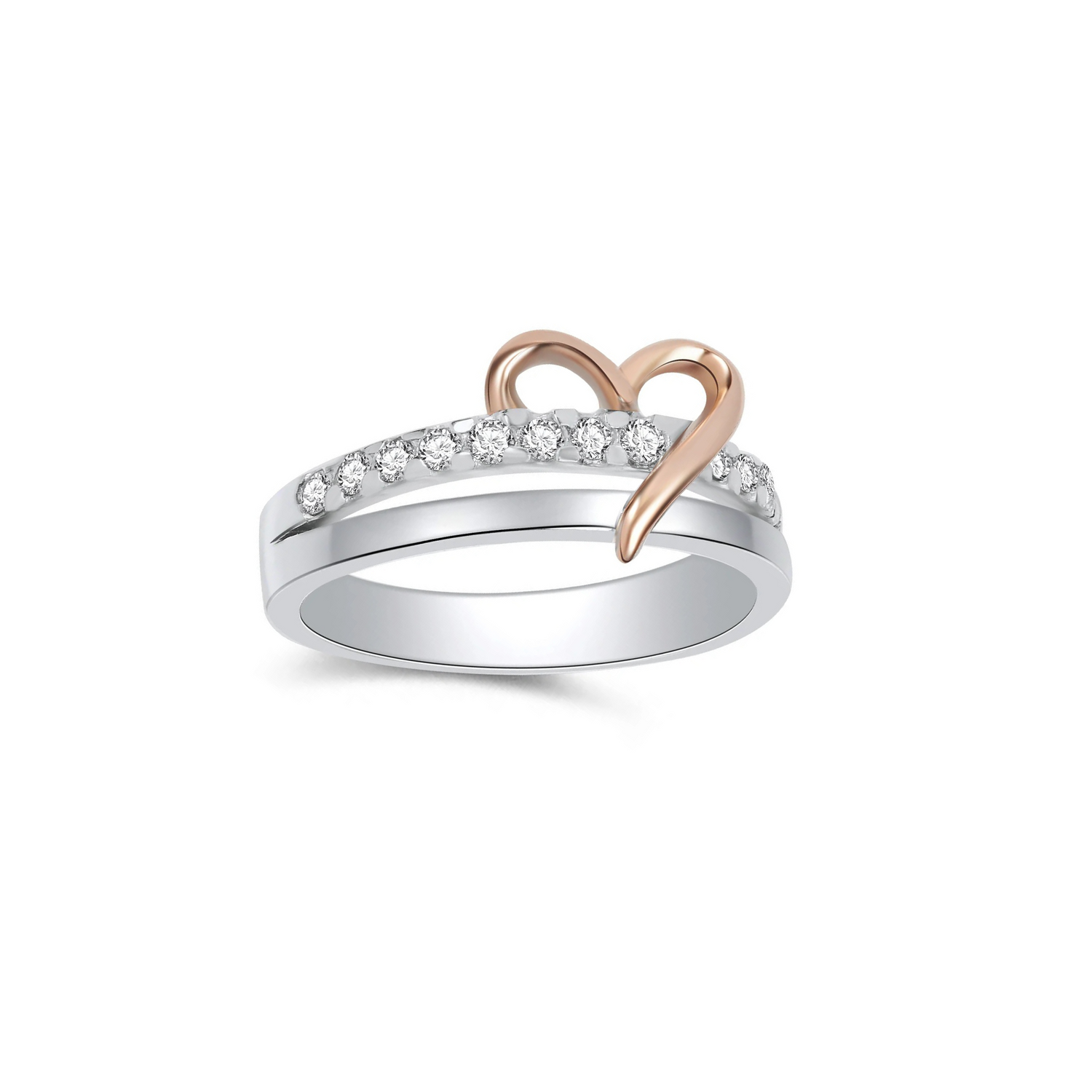 This ring is crafted from white and rose gold and set with brilliant-cut diamonds. It's perfect as an engagement ring, anniversary ring, or birthday ring.