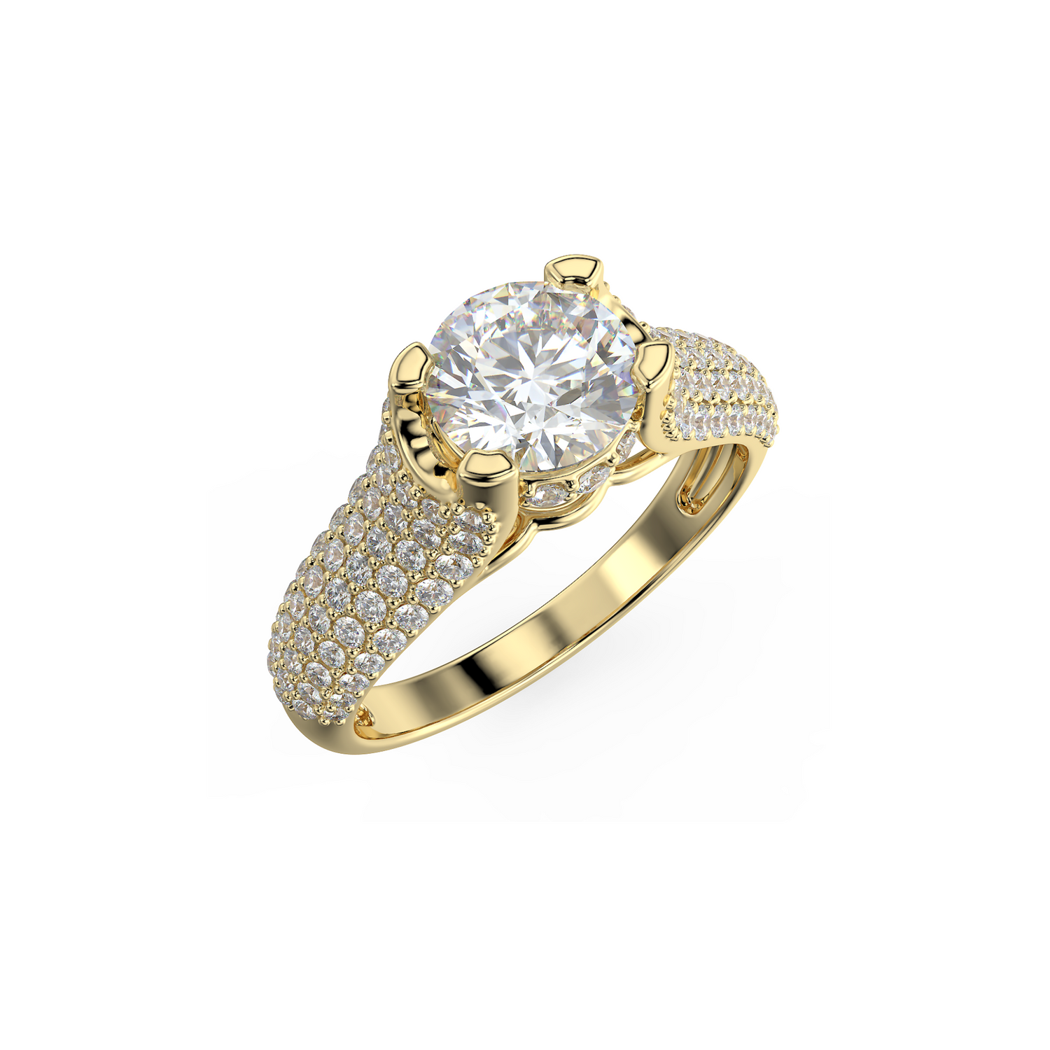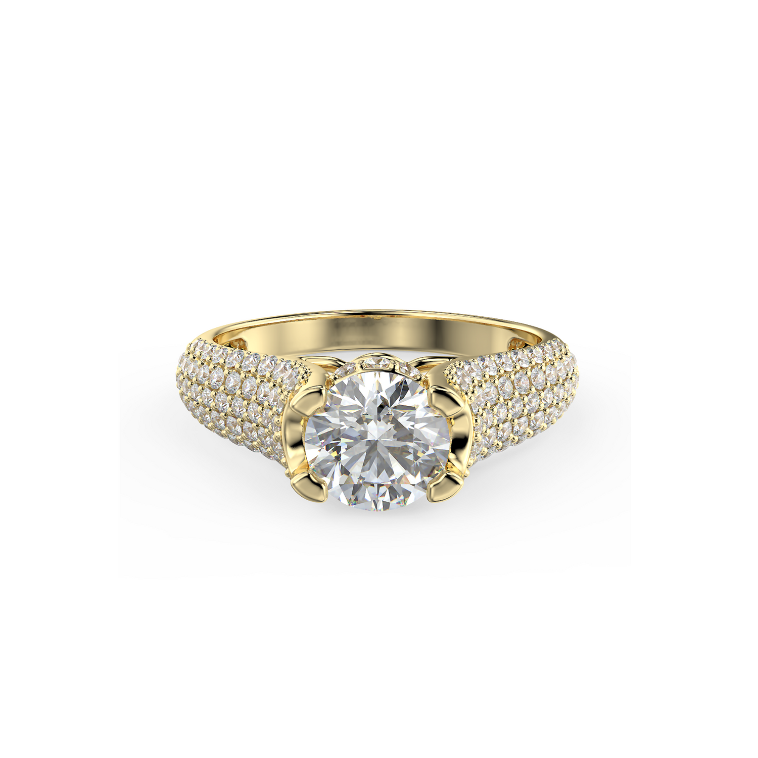 The Radiant Glow engagement ring captivates with its timeless design and precise finish. The central diamond is displayed in an elegant setting, while the entire band is set with smaller diamonds, creating a spectacular sparkle. The diamonds, weighing 1.51 ctw in total, give the ring a unique character and luxurious appearance. This piece of jewelry will perfectly complement any outfit, symbolizing elegance and love.