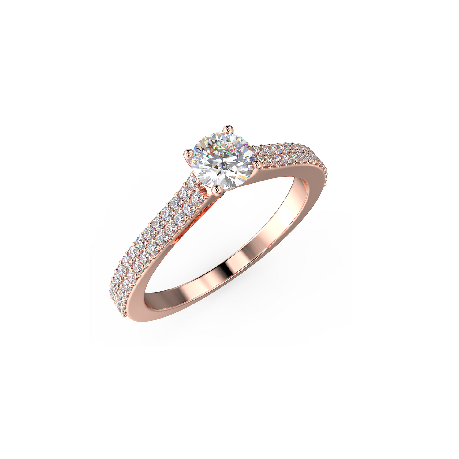 A unique engagement ring with an elegant and modern design that captivates with its subtle sparkle. The central 0.40-carat diamond is set in a delicate four-prong setting, highlighting its unique shape and beauty. The ring's shank is adorned with two rows of small diamonds, creating a striking yet delicate composition. Crafted from 585 (14K) gold, the ring perfectly combines durability with refined aesthetics, a perfect symbol of love and elegance.