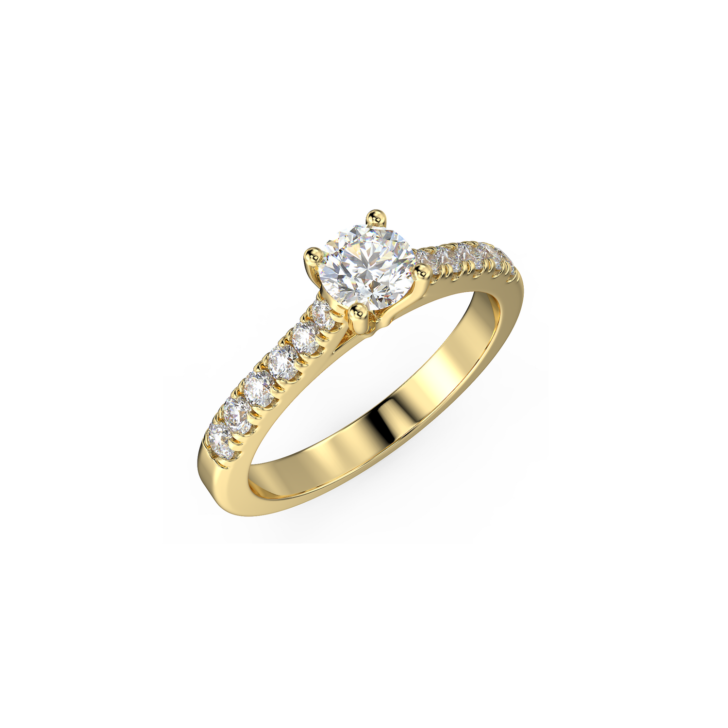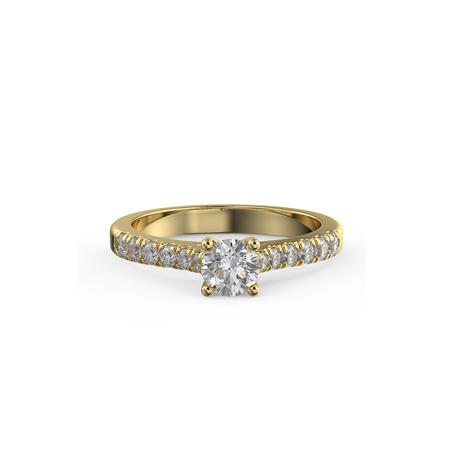 This elegant yellow gold engagement ring combines classic style with a modern twist. The central diamond is set in a four-prong setting, enhancing its brilliance and lending the piece a light and contemporary feel. The band, adorned with tiny diamonds totaling 0.56 ct, adds subtle elegance and exceptional charm to the ring. It's the perfect choice for those who appreciate timeless jewelry with a modern finish.