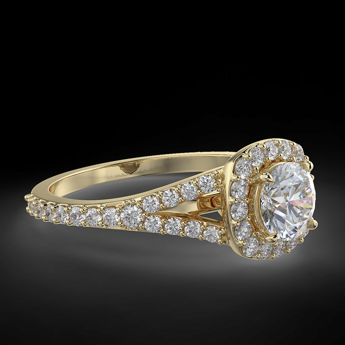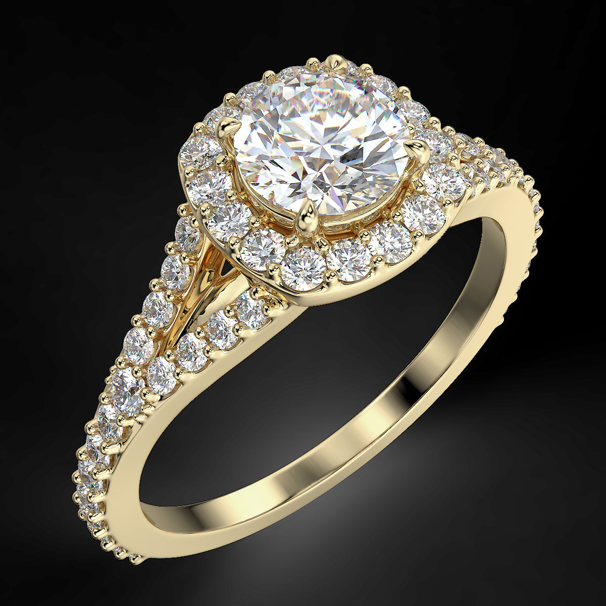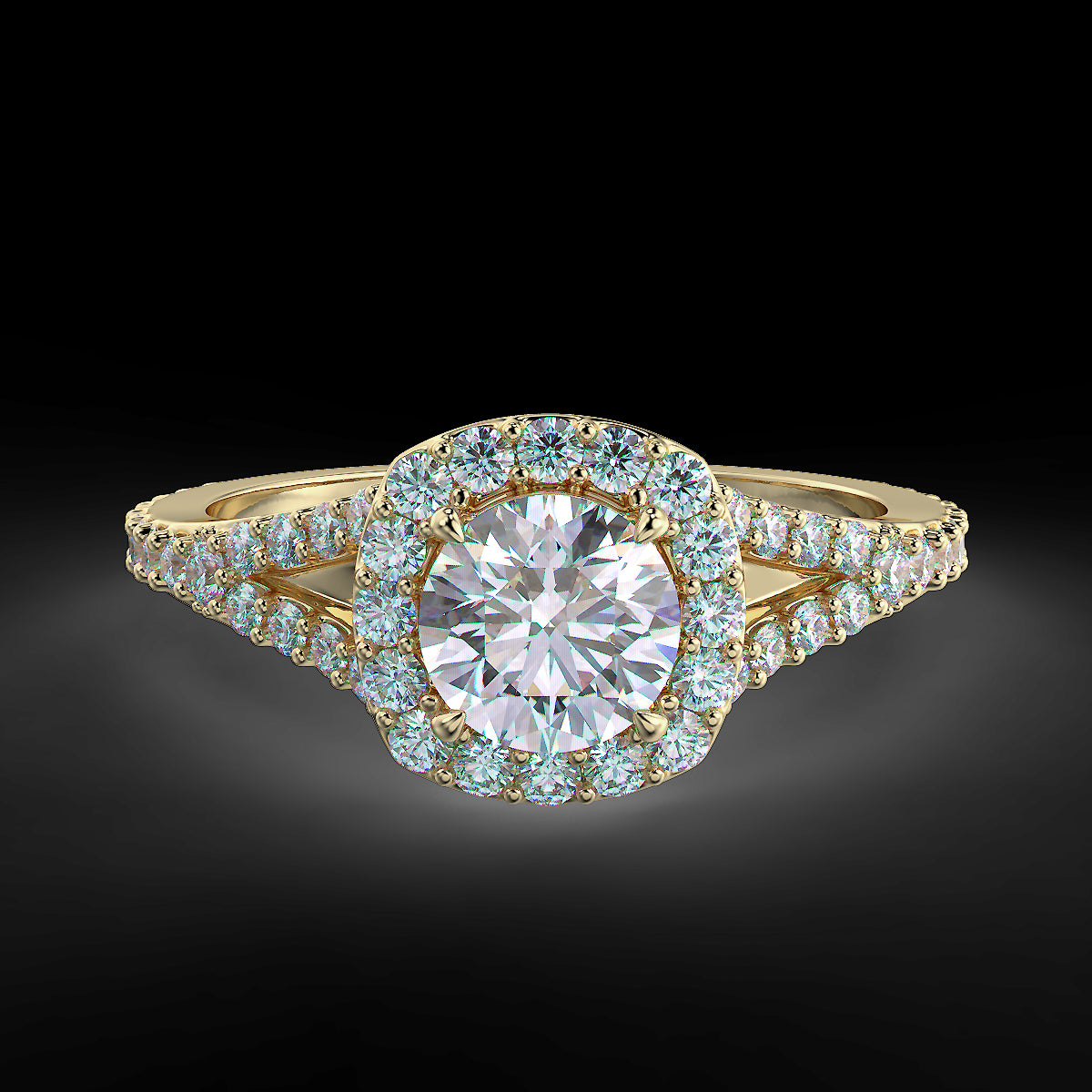 Starlight Halo - Yellow Gold Ring with 0.92 ctw Diamonds