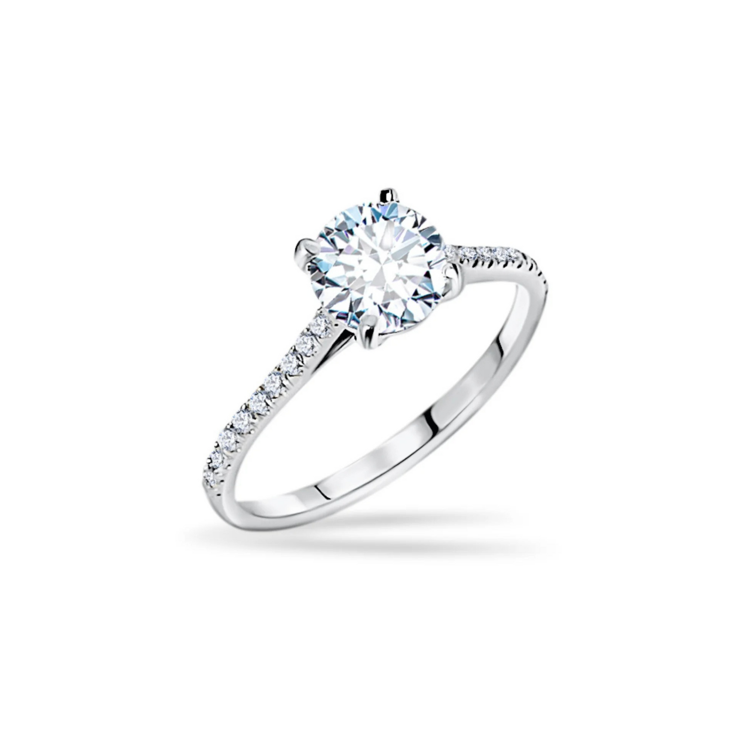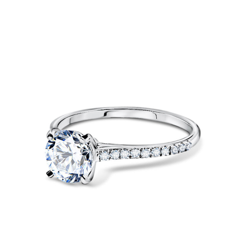 A beautiful engagement ring crafted from white gold with a striking 1.2ct lab-grown diamond, further enhanced by a delicate diamond band. The ring comes with a certificate from an international gemological institute: IGI or HRD. A natural diamond ring is also available – please contact us for a personalized quote.