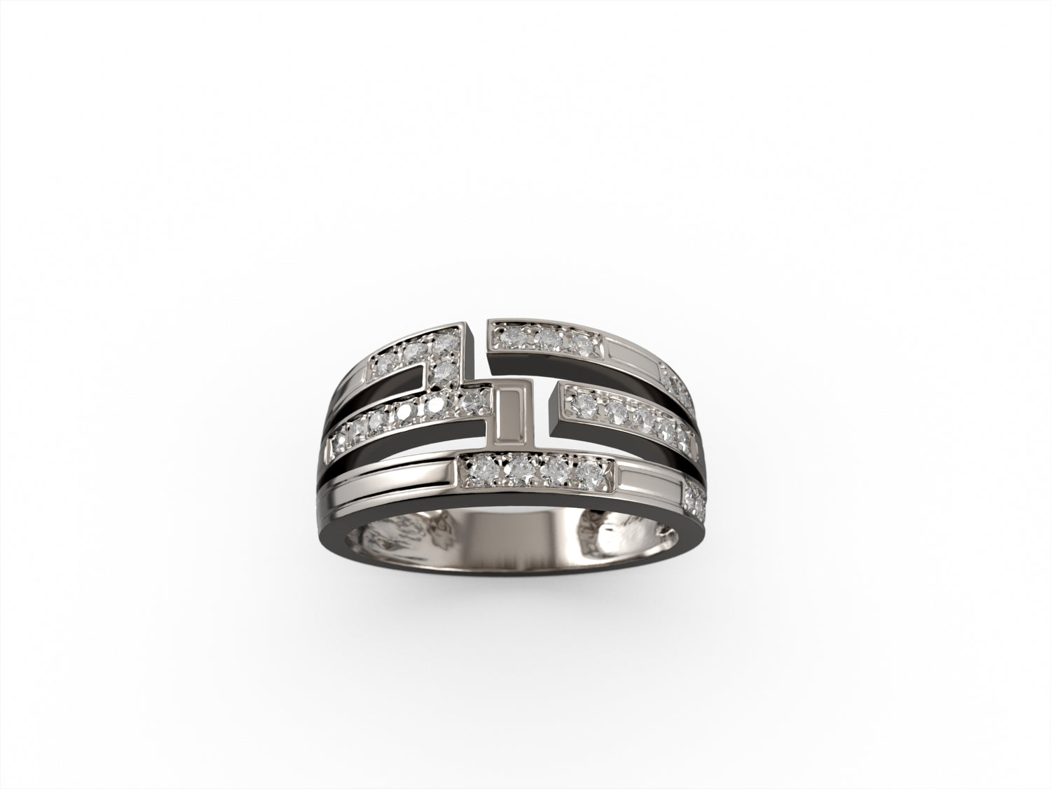 A unique ring in 585 (14K) white gold, adorned with diamonds weighing 0.44 ctw. Its simple, modern design highlights the unique character of the piece, adding a subtle touch of sparkle to any style.