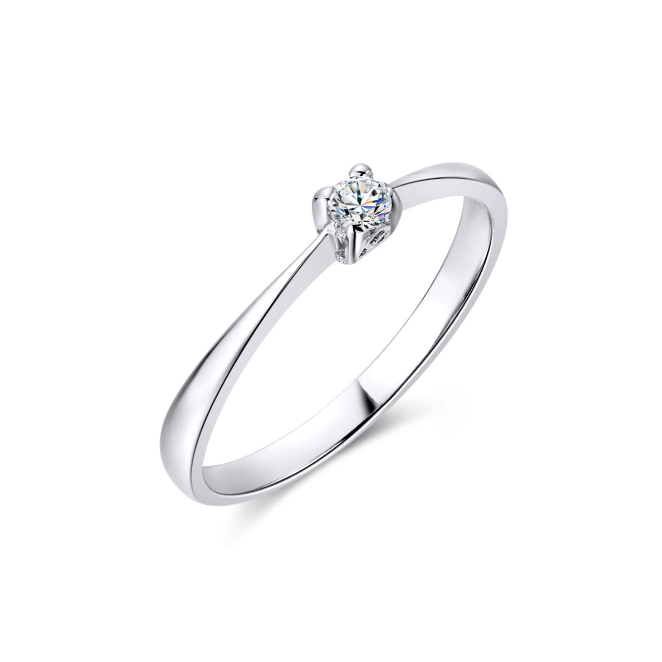 A classic for white gold lovers, this engagement ring combines an elegant look with exquisite finishing. It features a 0.1-ct brilliant-cut diamond, boasting exceptional brilliance. The stone is set on four openwork columns that accentuate its purity. The 14-karat yellow gold ensures excellent durability for years to come. The simple shape of the band complements its beauty.