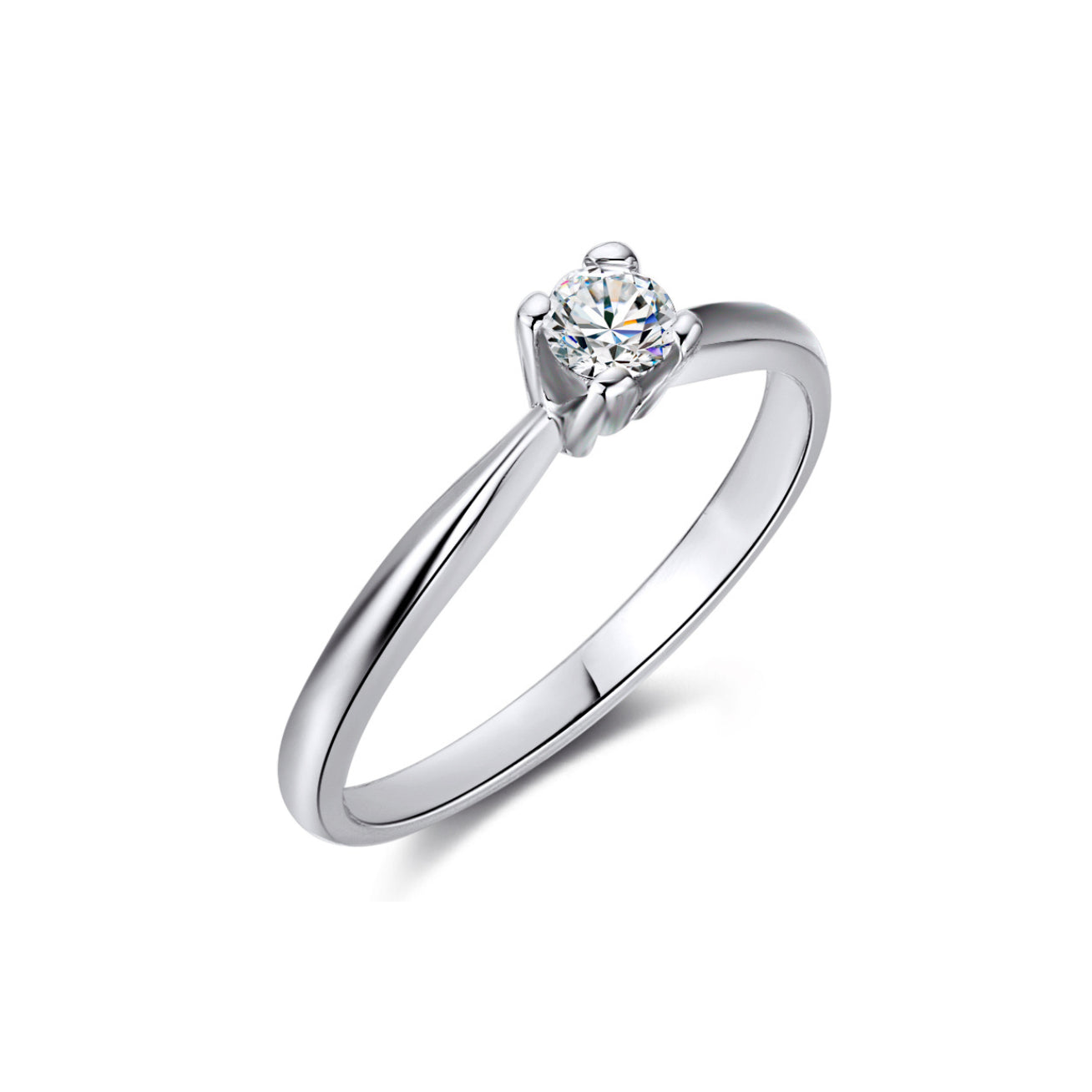 This white gold ring with a 0.15ct diamond is a subtle harmony of simplicity and brilliance. Four slender prongs, with a modern, geometric design, showcase the stone, emphasizing its purity and natural brilliance. It's a perfect choice for lovers of minimalist jewelry where form and precision are paramount. Its casual elegance makes the ring a perfect complement to both everyday outfits and special occasions.
