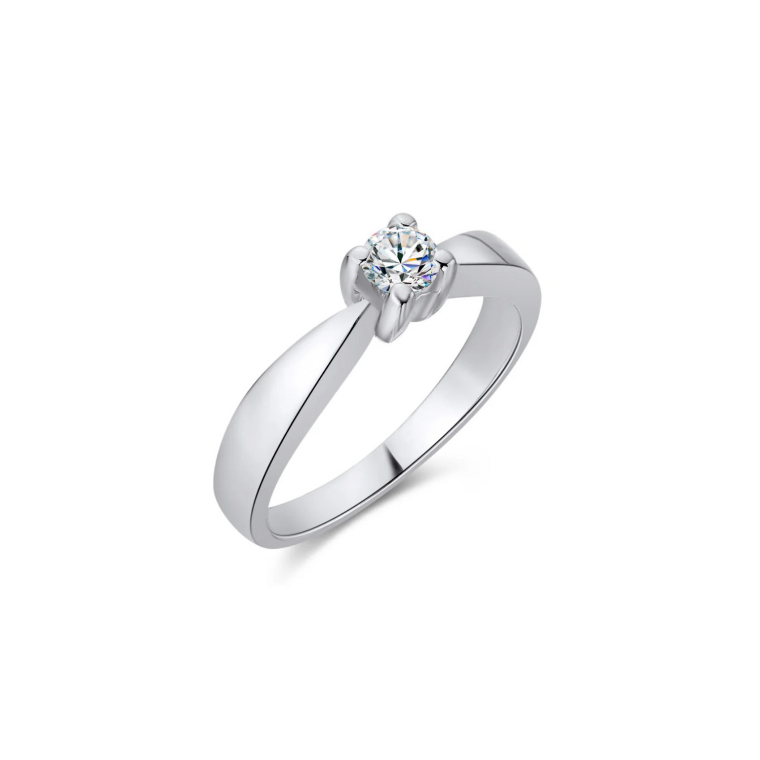 This unique engagement ring combines solid form with classic elegance. The massive band accentuates its distinctive character, while the four-point setting showcases the diamond in its full glory. It's the perfect choice for those who appreciate jewelry with a strong, assertive style that remains timeless and stylish. The distinct form and subtle sparkle of the diamond make this ring a symbol of durability and enduring beauty.
