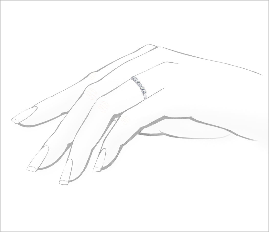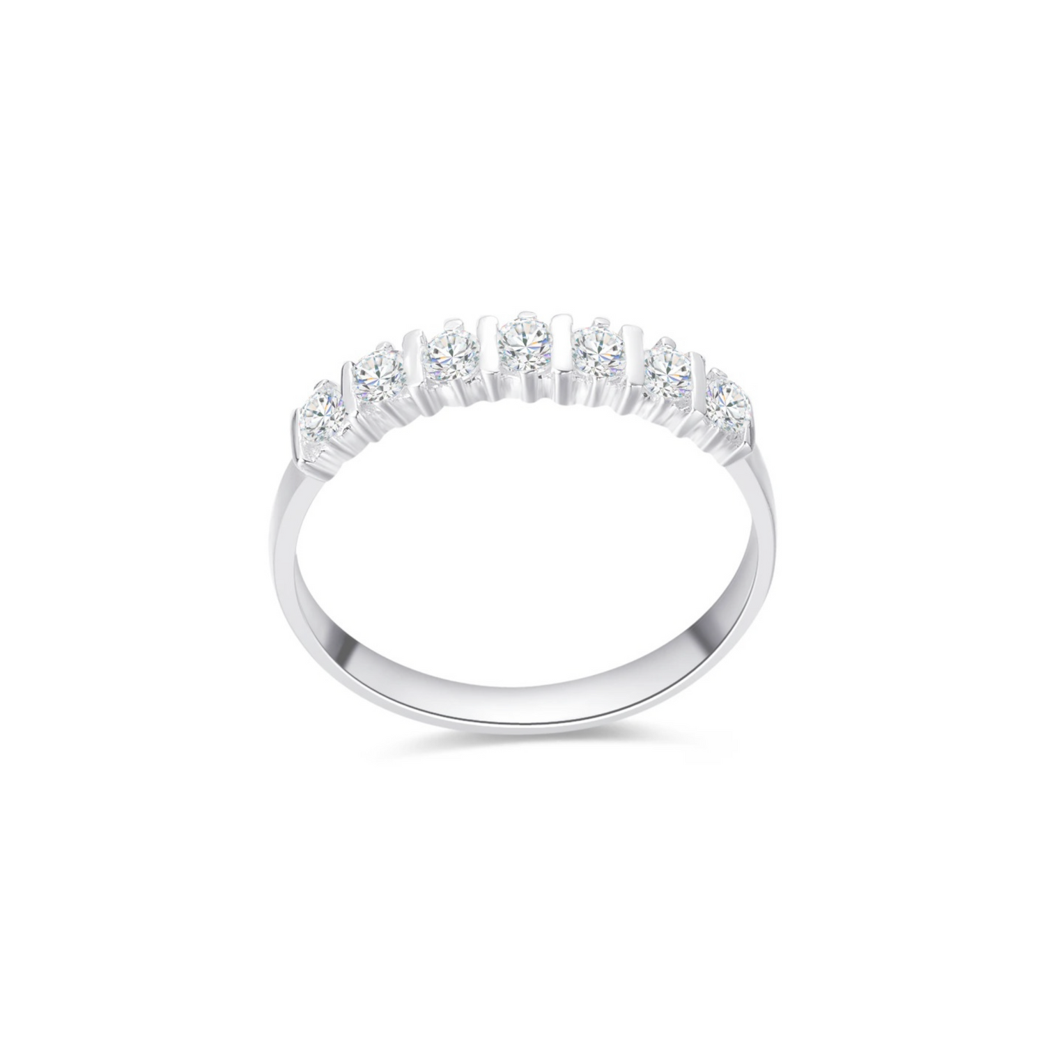 The modern design and sparkling diamonds are eye-catching. The ring's symbolic meaning stems from its arrangement of seven diamonds, which, according to tradition, bring good luck and prosperity. The ring's unique character also lies in the way the diamonds are set in white gold. The striking and innovative setting highlights the beauty of the stones and the brilliance of the precious metal.