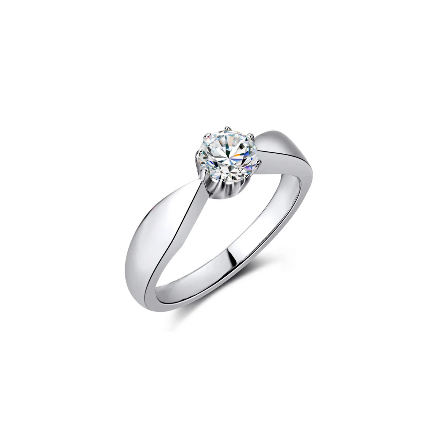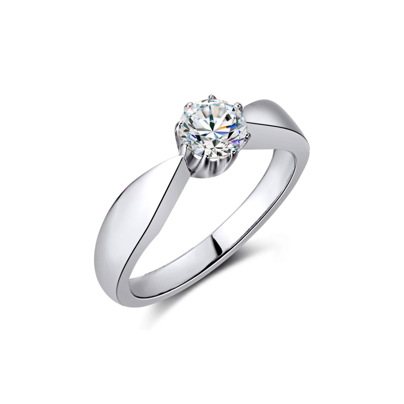 The beautifully exposed stone and classic 14-karat white gold setting create a harmonious piece of jewelry that will look beautiful on your loved one's finger. The 0.40-carat brilliant-cut diamond is set in a decorative eight-pronged crown, showcasing its beauty. A wider, contoured band, tapering towards the stone, further accentuates its striking appearance.