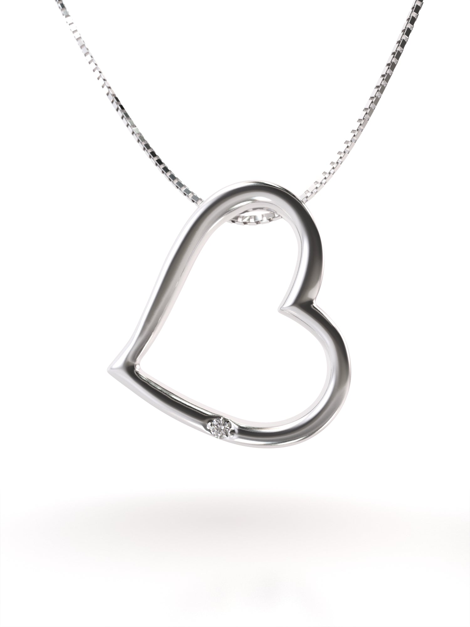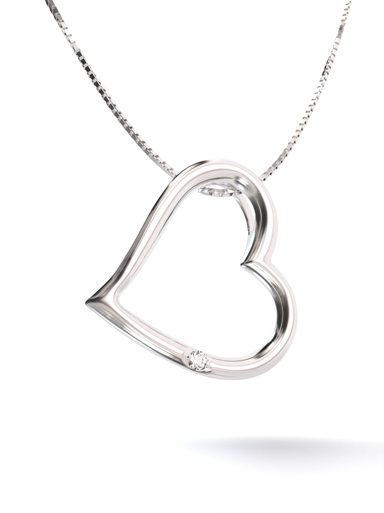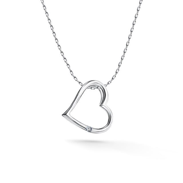 This delicate, heart-shaped pendant, crafted from 925 sterling silver, captivates with its delicacy and elegance. A beautifully brilliant diamond, delicately set on the side, adds a touch of charm, adding a unique character to the piece.