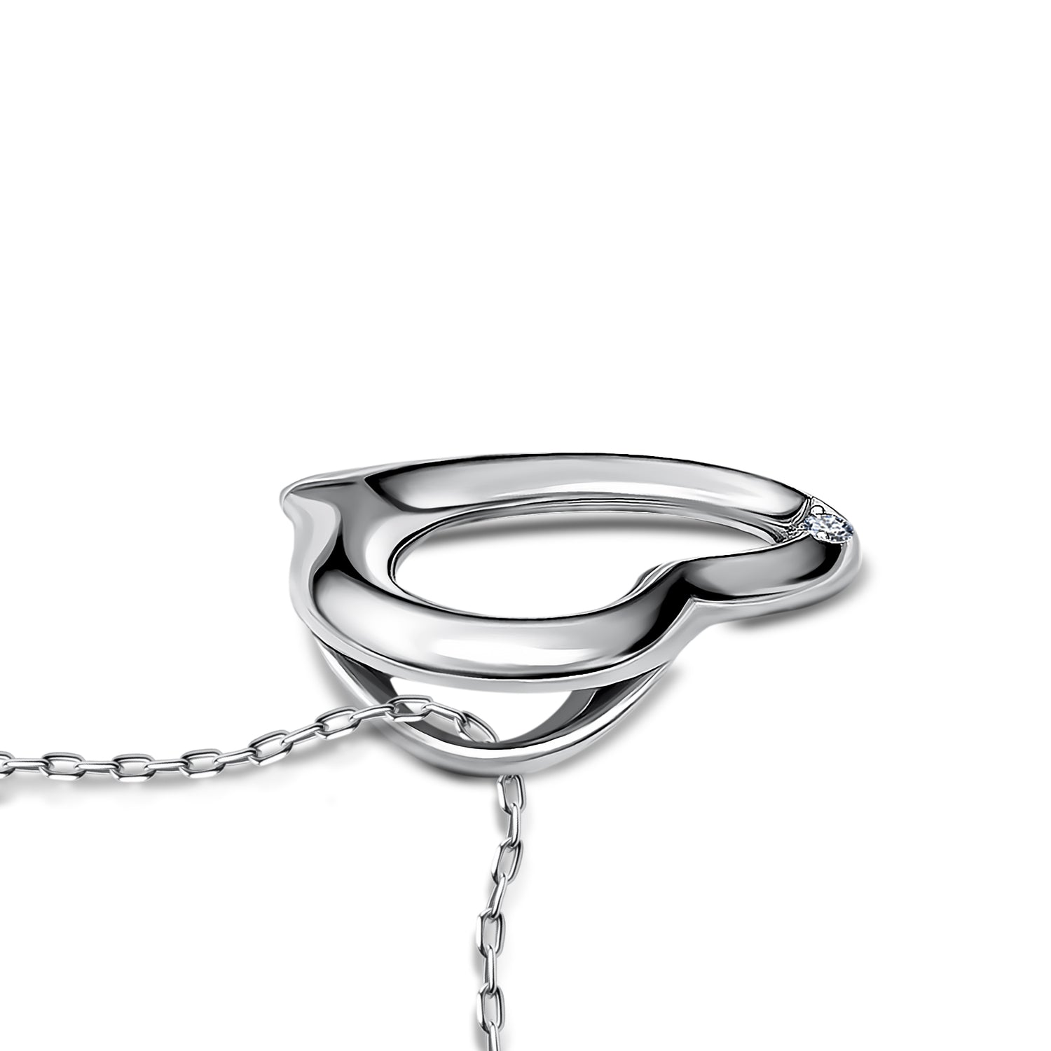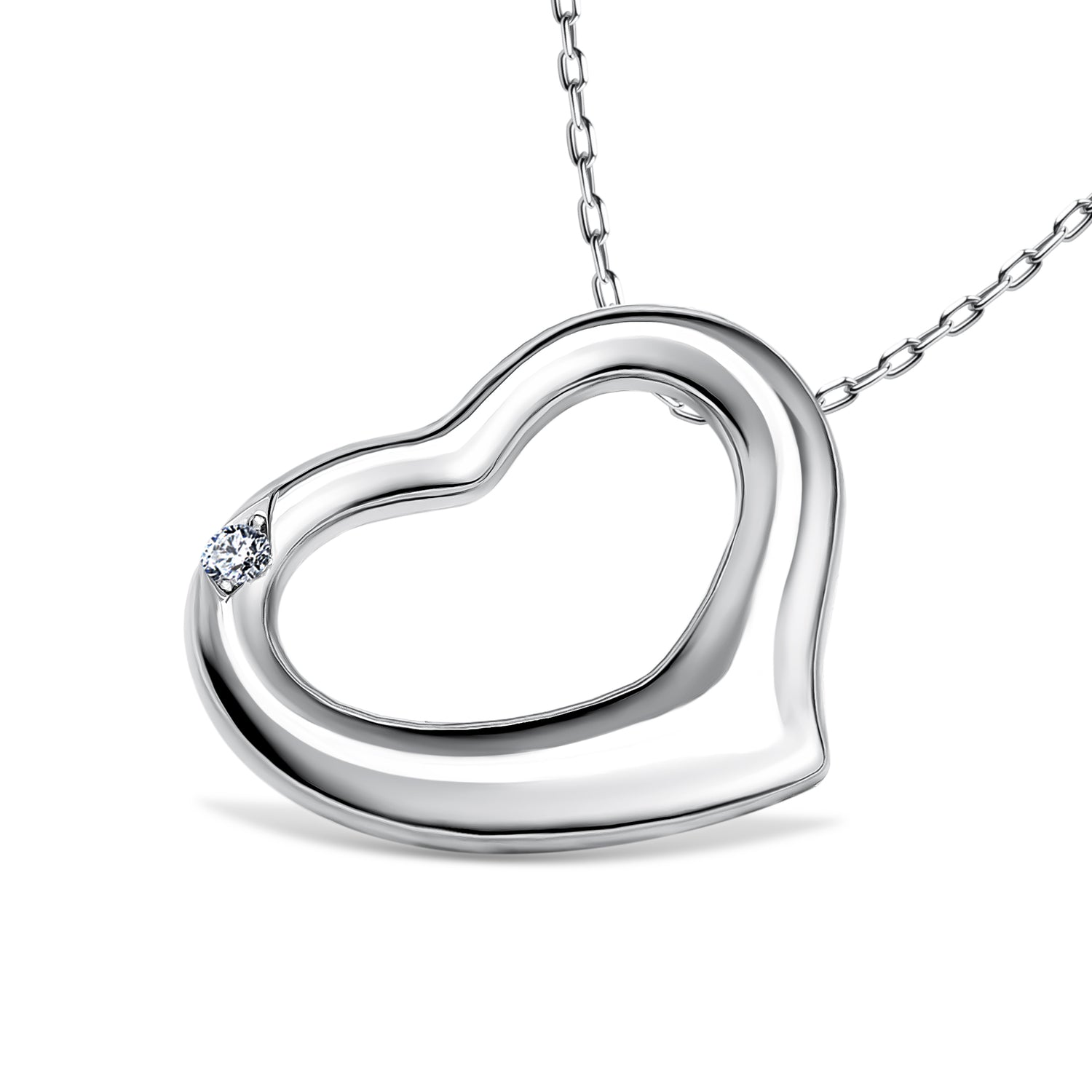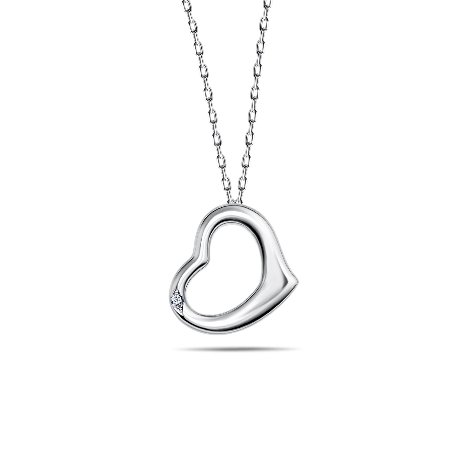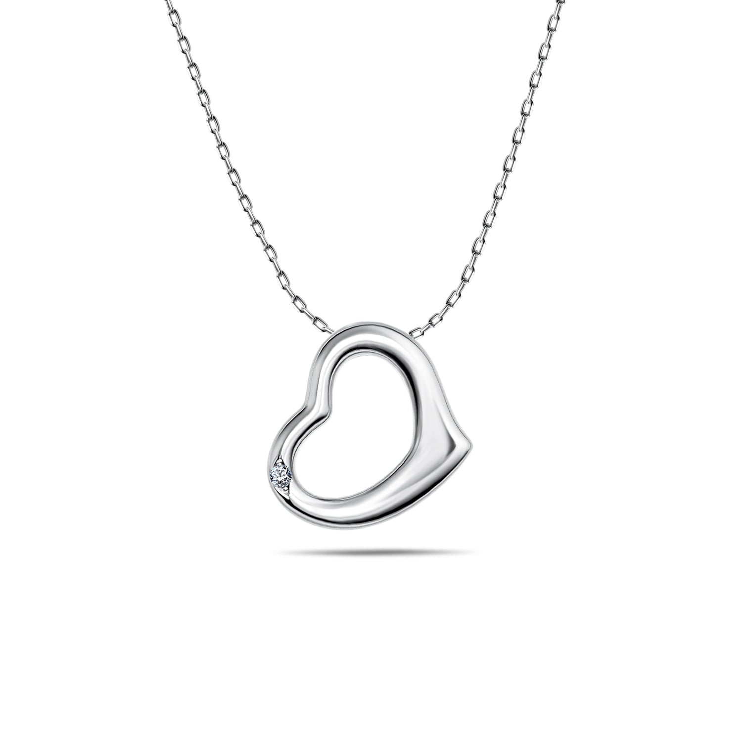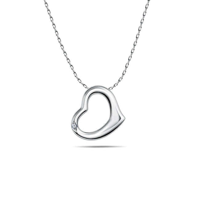 This elegant silver heart-shaped pendant, with its soft, delicate lines, symbolizes subtle love. A 0.02-carat diamond adds to its charm, beautifully reflecting light, creating a subtle sparkle.