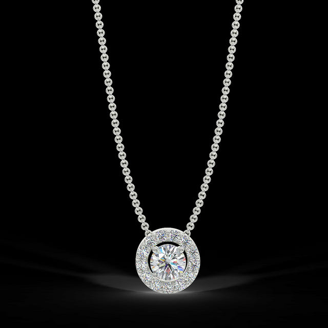 White gold halo pendant with 0.15 ct diamonds