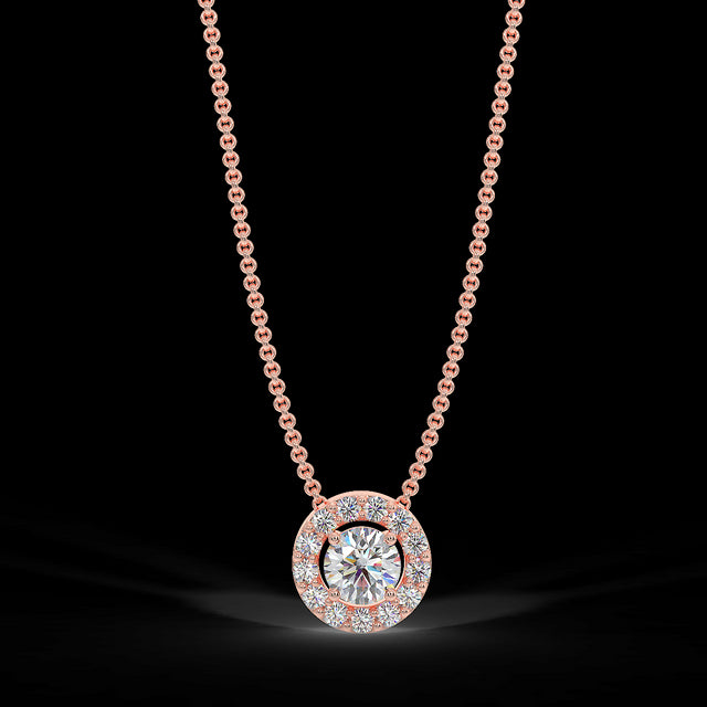 Rose gold halo pendant with 0.15 ctw diamonds is backordered and will ship as soon as it is back in stock.