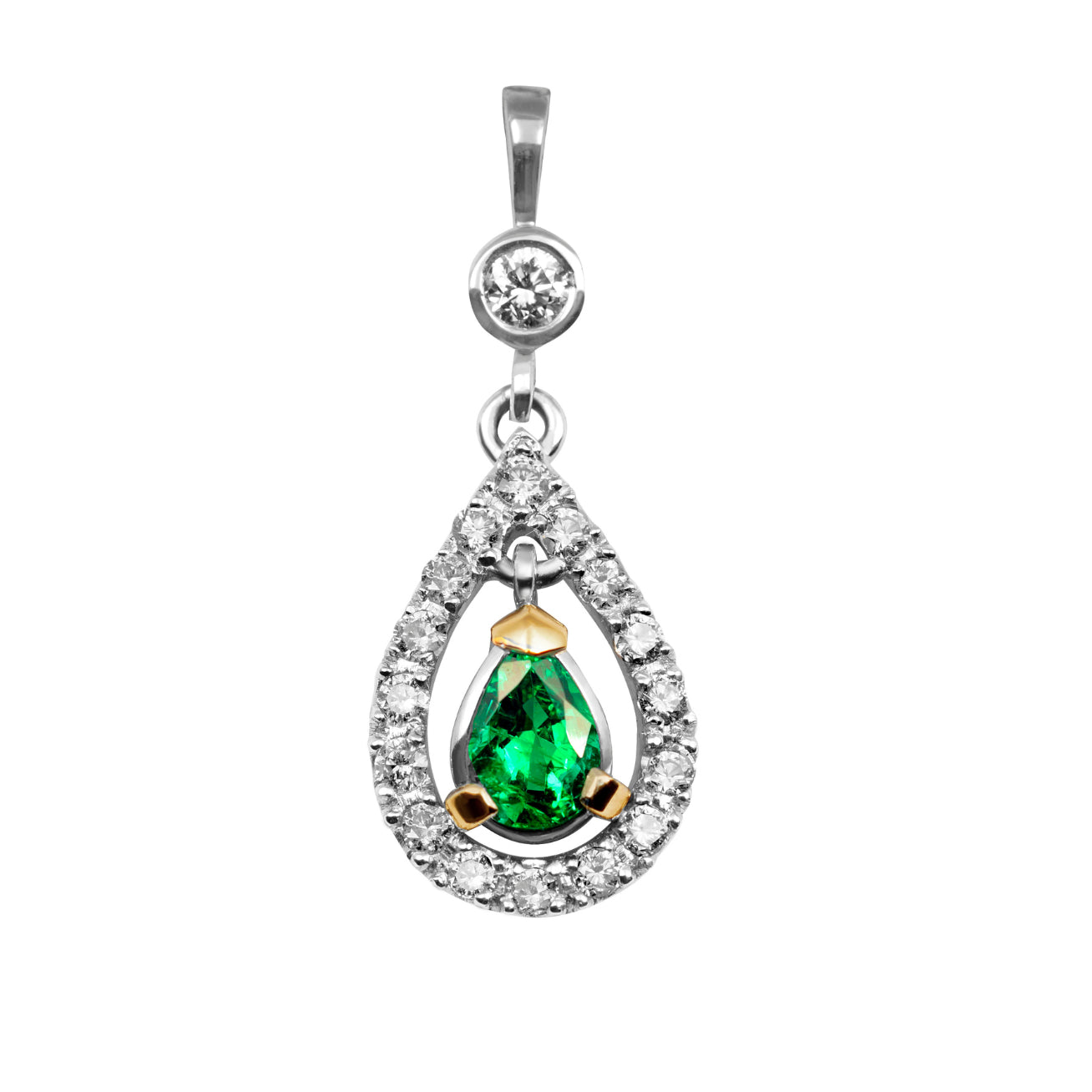 585 gold pendant with emerald and diamonds 1.5 ctw