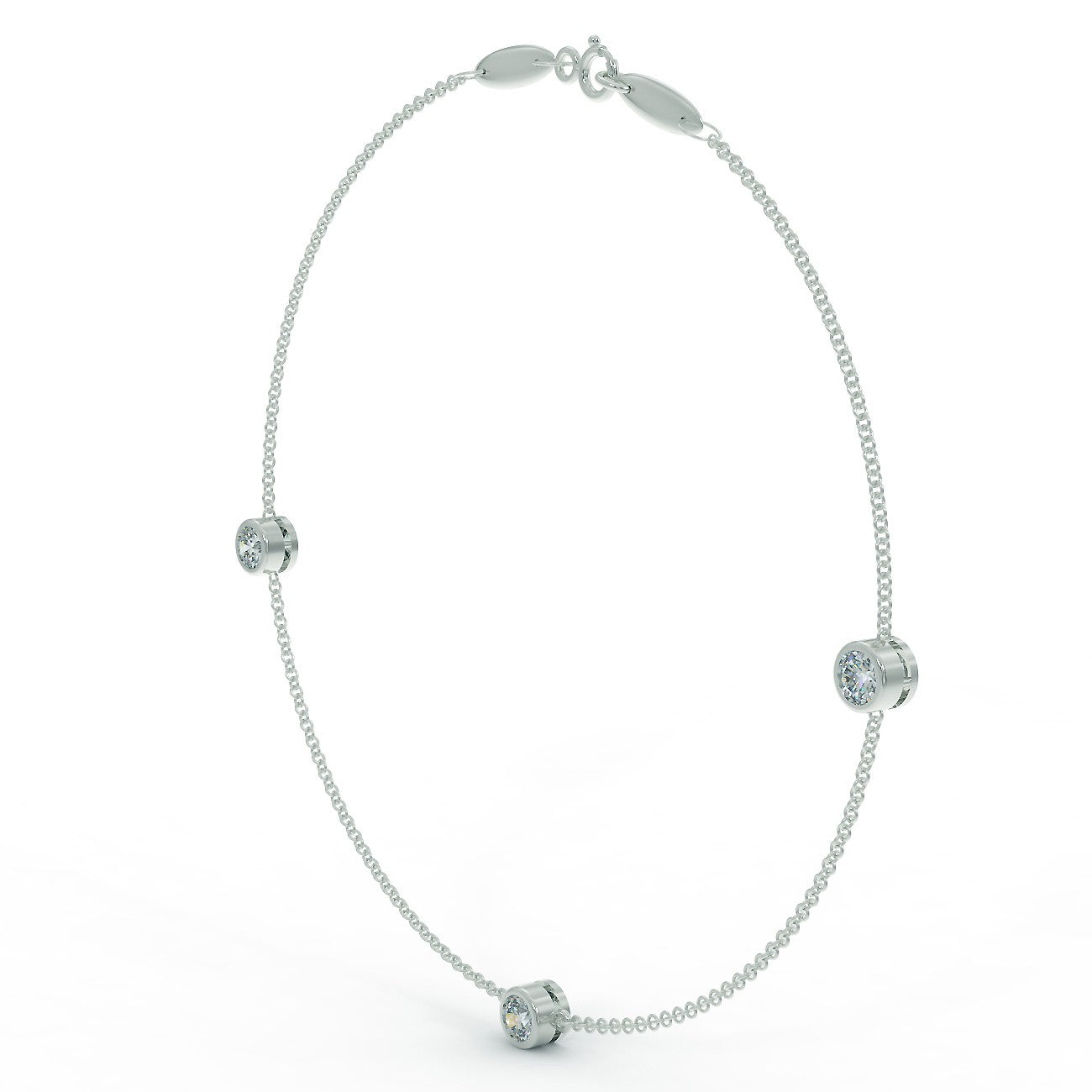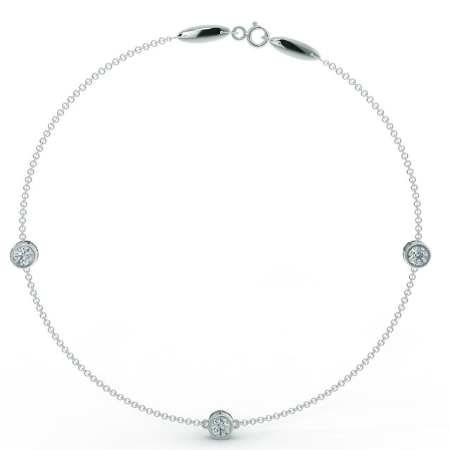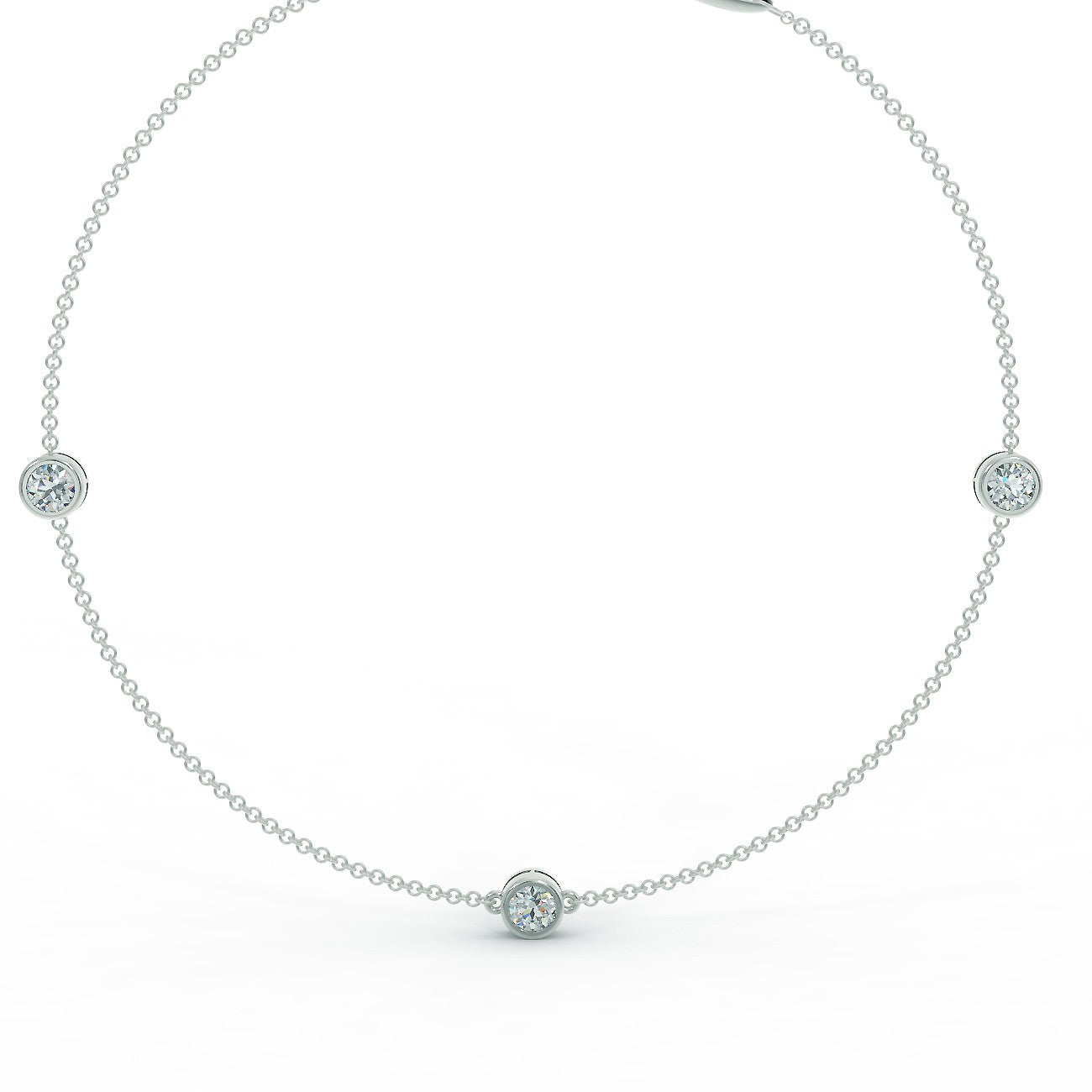 A subtle and elegant bracelet crafted from 585 (14) white gold. Three symmetrically spaced diamonds, set in cargi, totaling 0.90 ctw, complete the look. This lightweight bracelet is designed to complement a variety of styles. Its understated elegance can complement a casual dress or a special occasion.