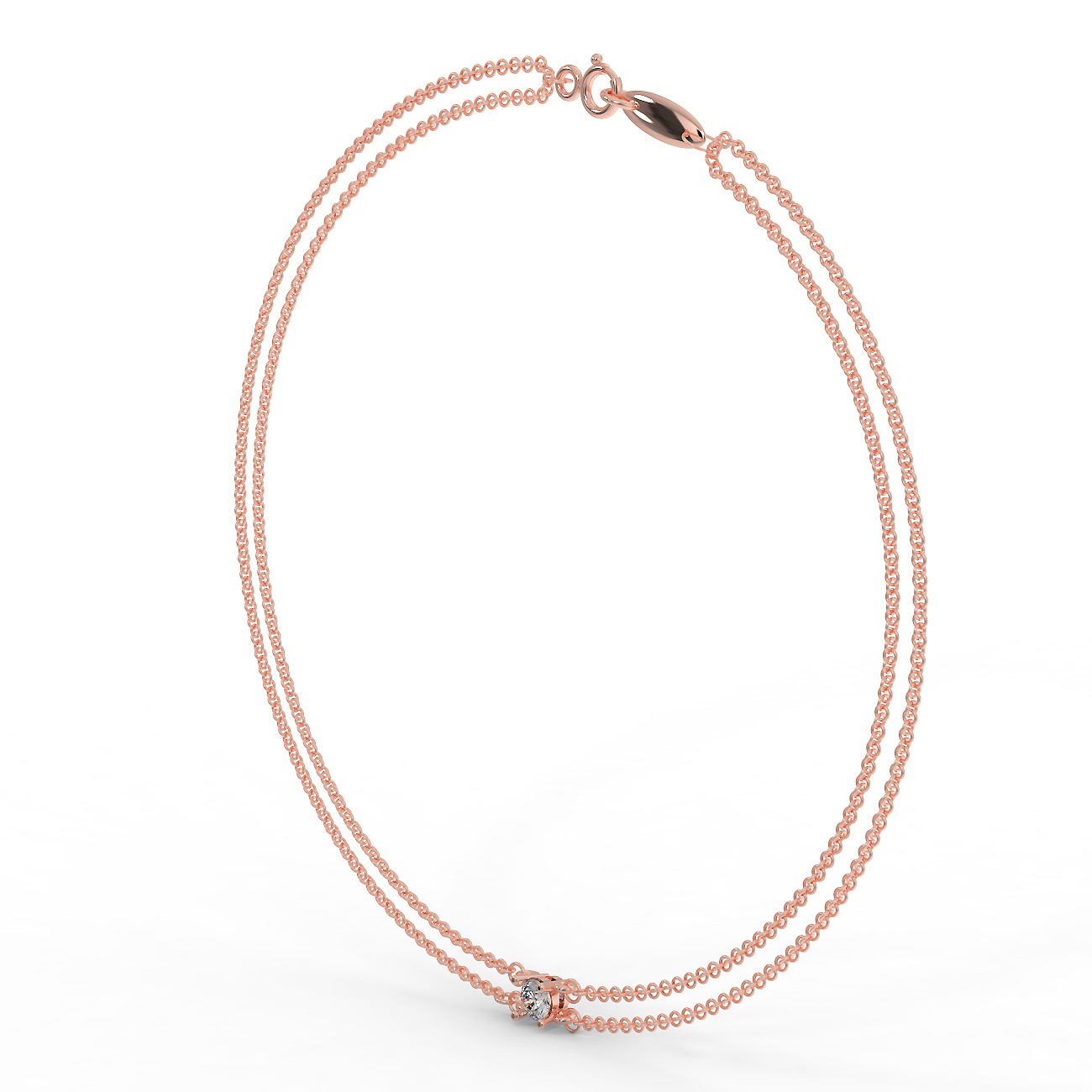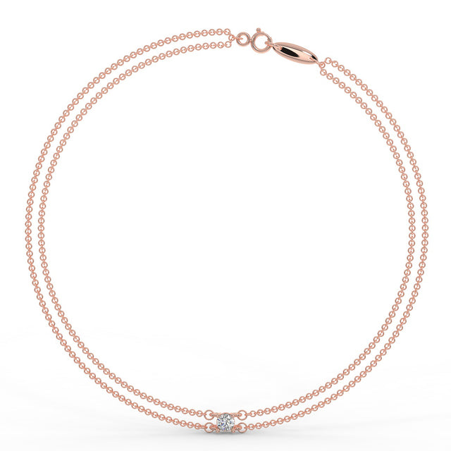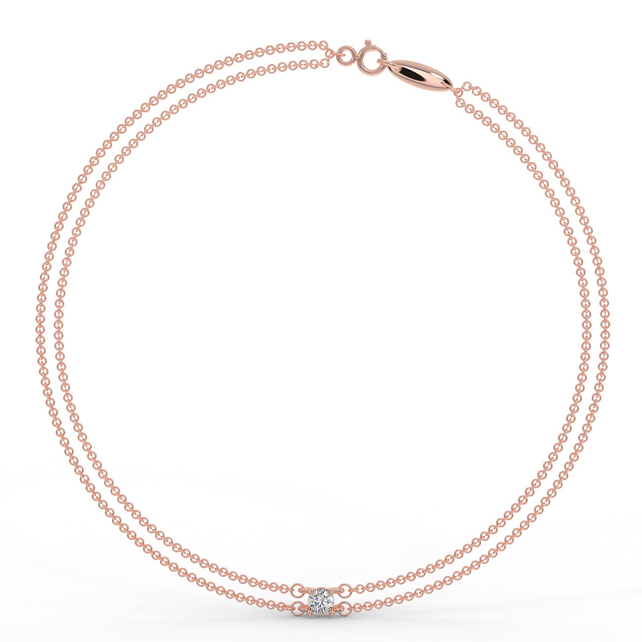 Gold bracelet with a double chain made of 585 (14K) rose gold, decorated with a beautifully sparkling diamond weighing 0.20 ct.