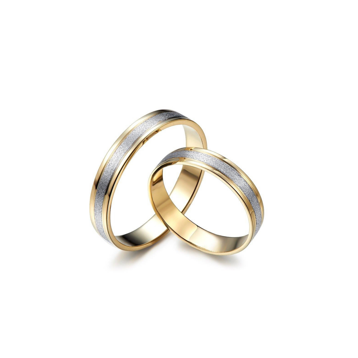 The rings are crafted from two types of gold, which enhance each other's charm. They can be made in different widths and adorned with a diamond. Please contact us for details and pricing.