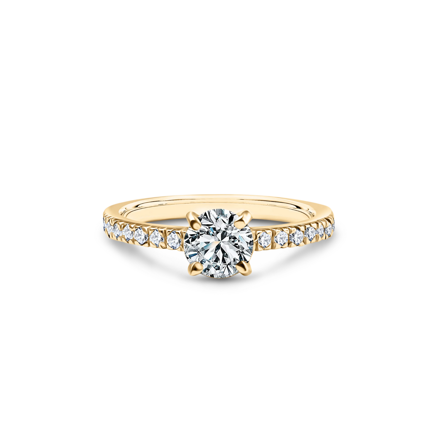 The Éclat Blanc ring is a classic in its purest form, featuring a brilliant-cut 0.75ct Lab-Grown diamond. Set in a classic four-pronged setting, the central diamond appears to float above the band, which is set with smaller stones. Crafted in yellow gold, the ring adds warmth and depth to the design.