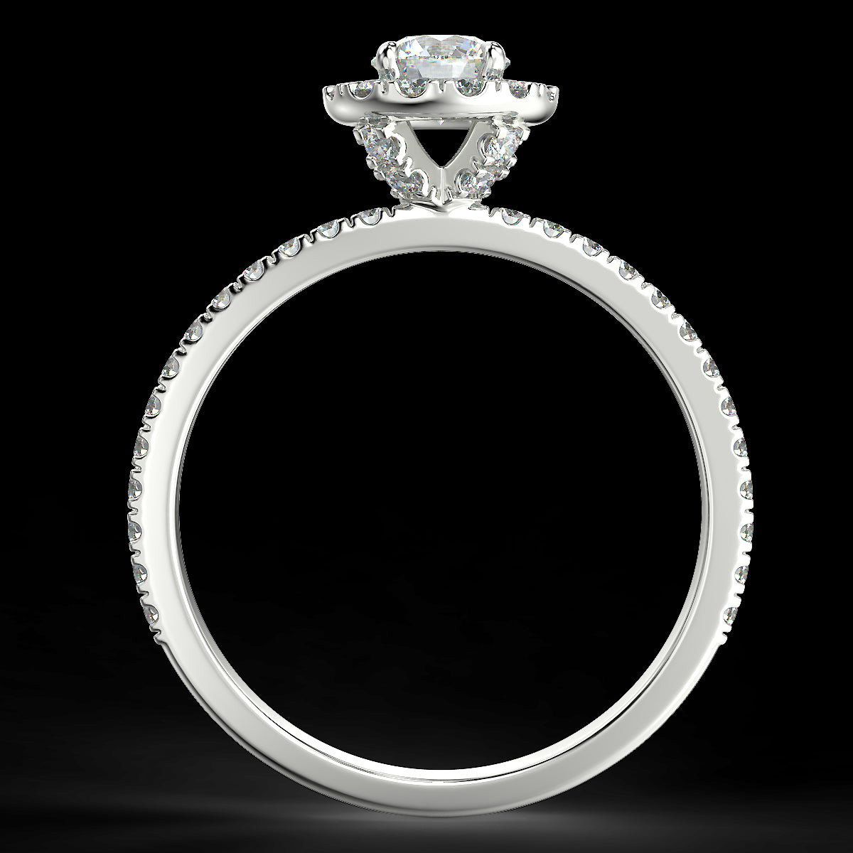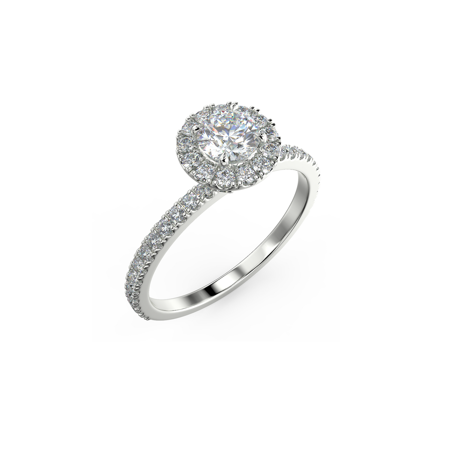 This striking halo ring captivates with its exceptional brilliance and meticulous craftsmanship. The central diamond is surrounded by smaller stones, enhancing its brilliance and lending the piece a luxurious touch. The slender band, with its subtle embellishment, blends harmoniously with the crown, creating an elegant yet modern design.