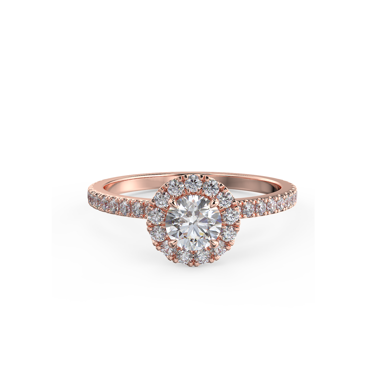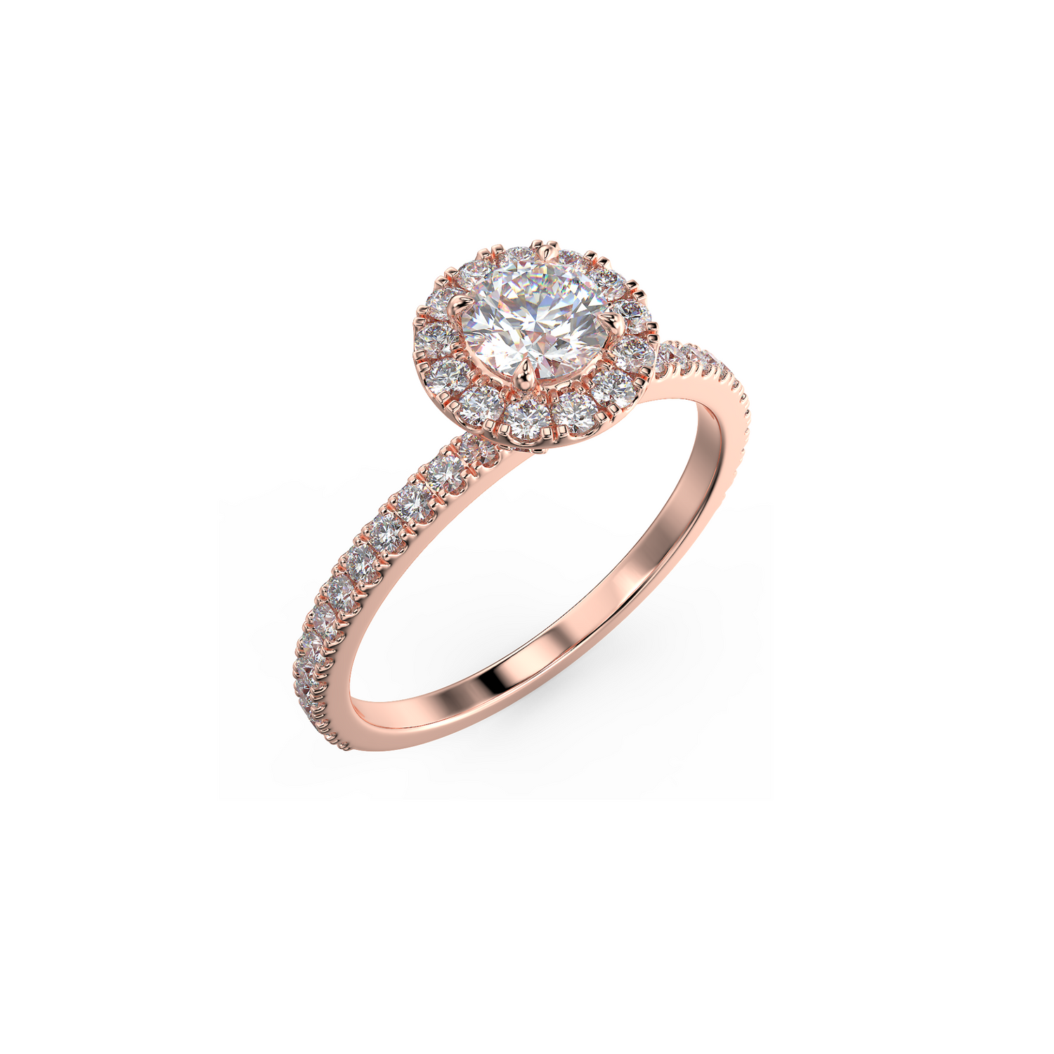 This striking halo ring captivates with its exceptional brilliance and meticulous craftsmanship. The central diamond is surrounded by smaller stones, enhancing its brilliance and lending the piece a luxurious touch. The slender band, with its subtle embellishment, blends harmoniously with the crown, creating an elegant yet modern design.