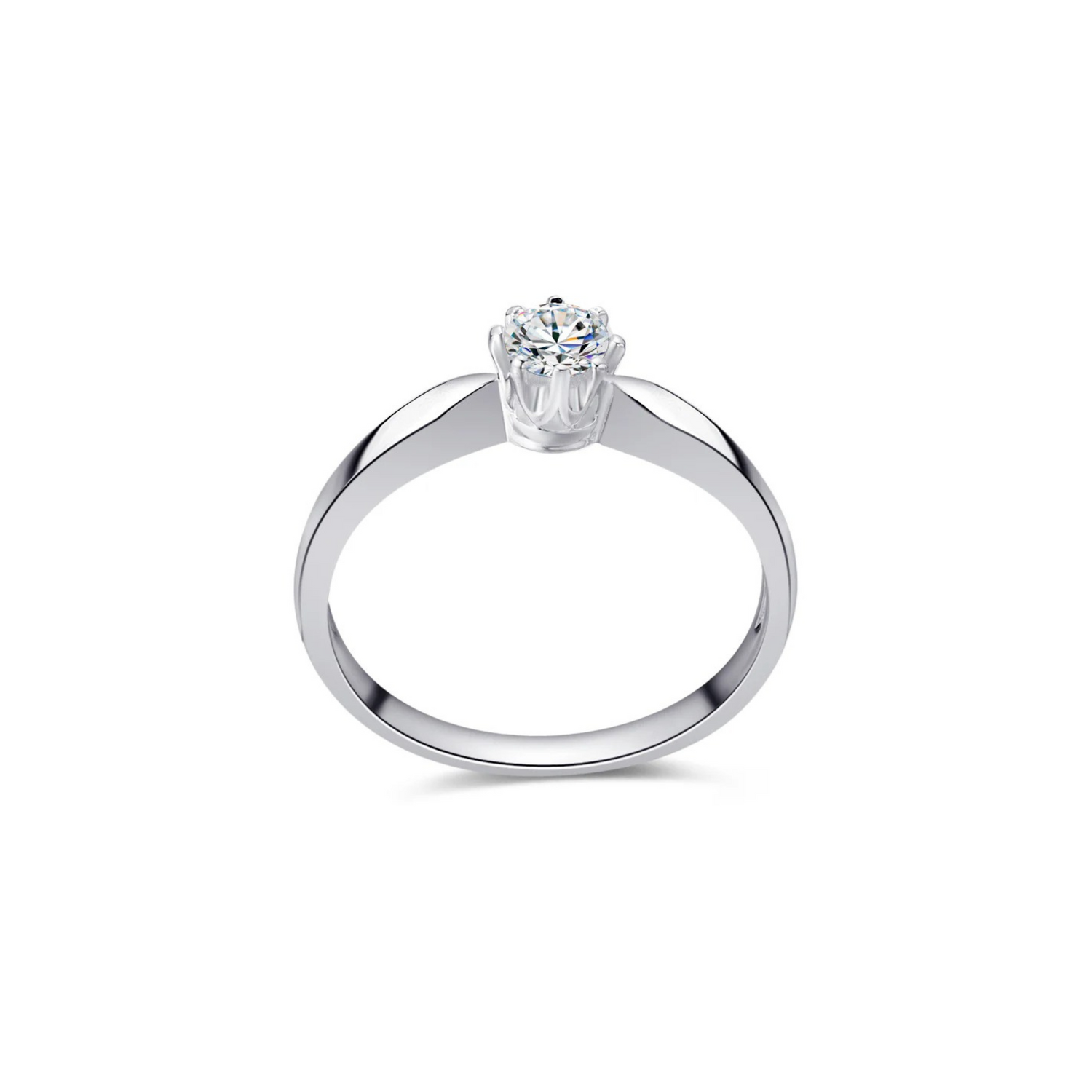This unique engagement ring features a 0.25ct diamond set in an eight-pointed gold crown. This makes it a beautiful design for lovers of classic style. This ring can also accommodate a larger diamond, such as 0.30ct or larger.